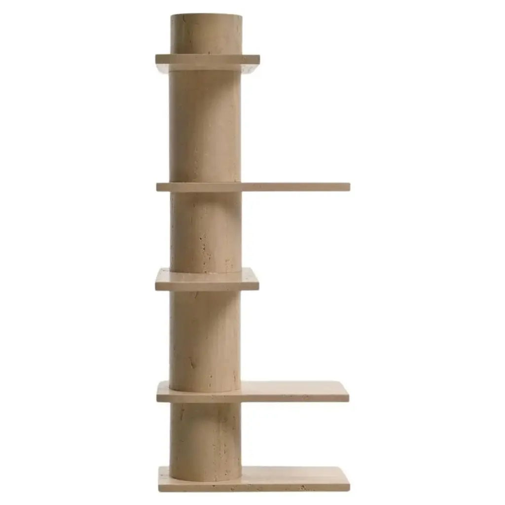 Roma Bookshelf by Somaschini Dimensions: W 65 x D 65 x H 161 cm Materials: Solid Roman Travertine structure. Boookshelf in solid Roman Travertine.