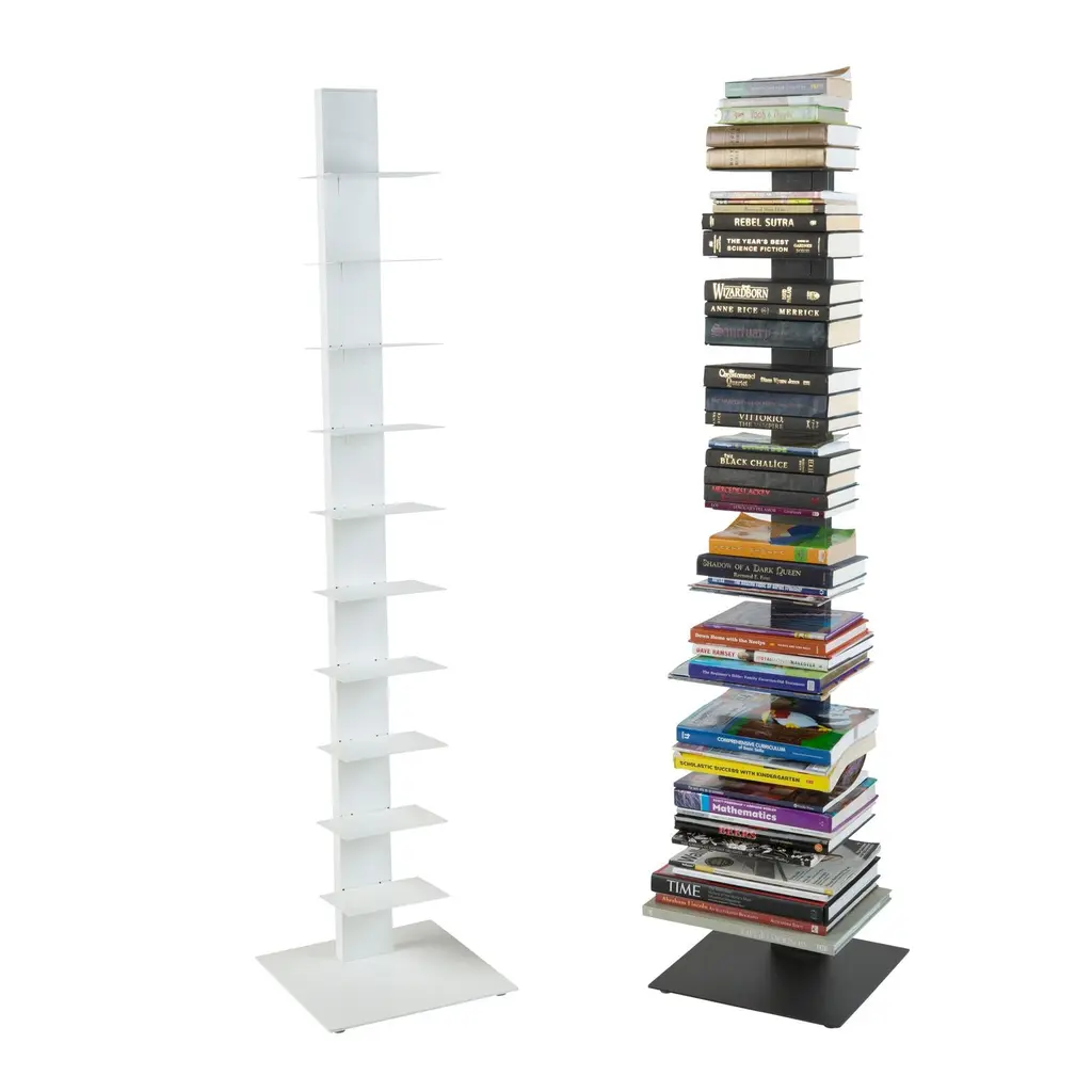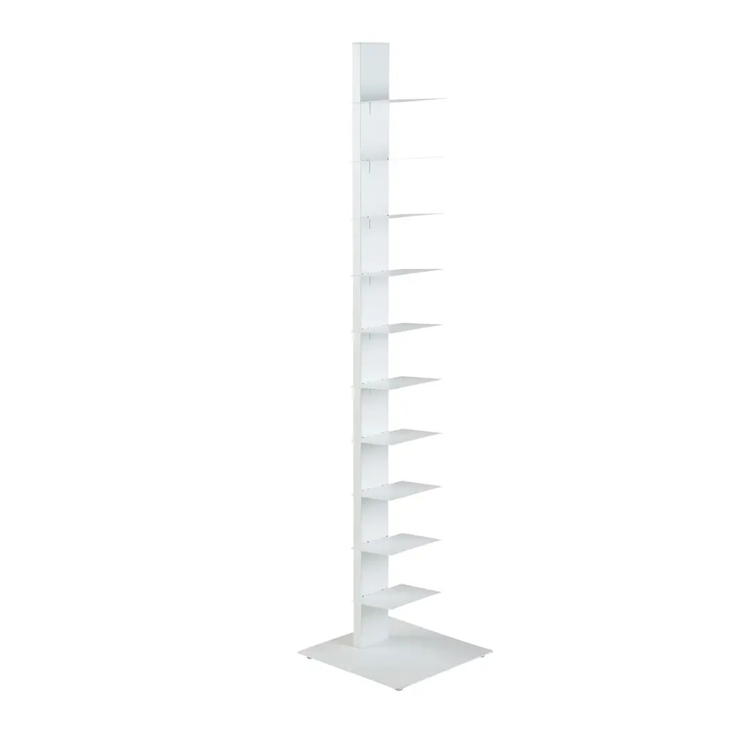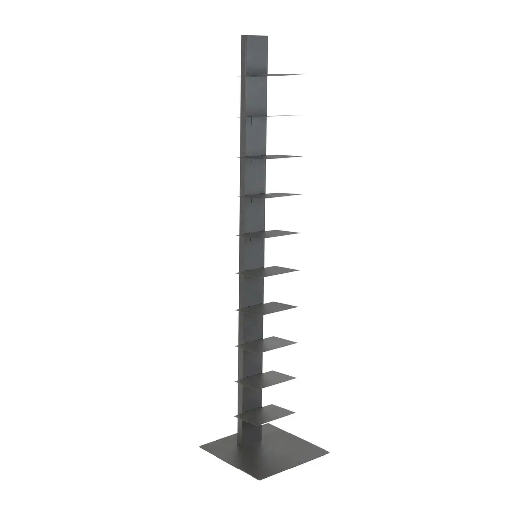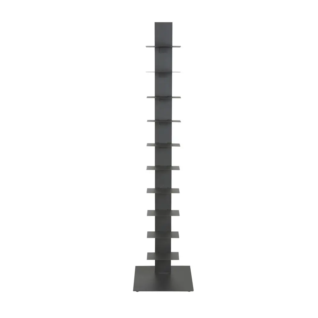 Sapiens 60" Bookcase/Shelf/Shelving Tower in Anthracite Powder coated steel tower, shelves and base. Ten shelves. Shelf weight capacity: 10 lbs. Adjustable feet.