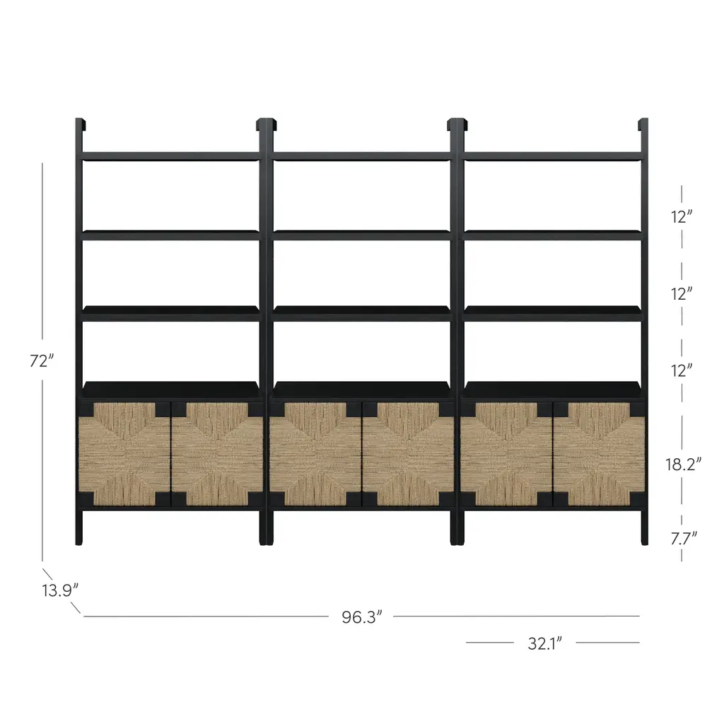Seagrass Wall Bookshelves With Doors Black (Set Of 3)