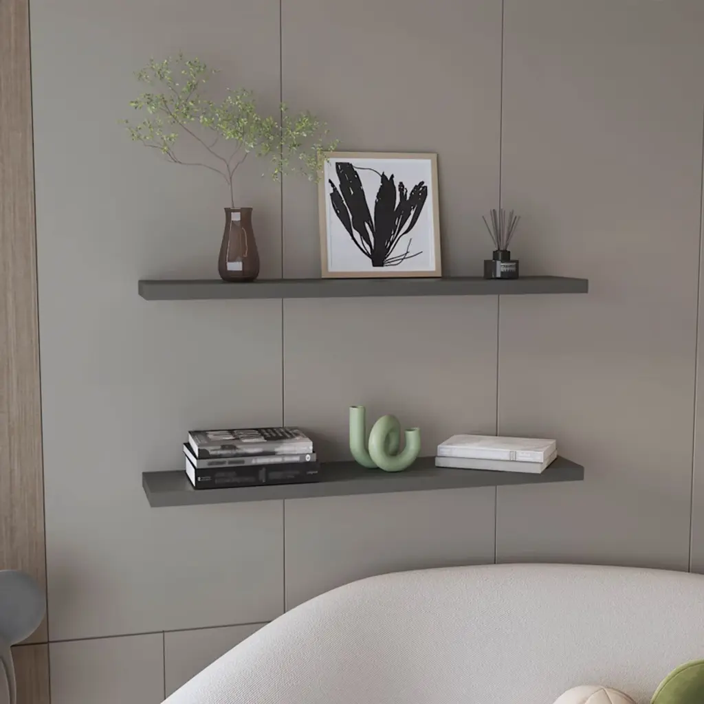 Sevobal Utility Storage Shelves Bookshelf Set Of 2 Wide Floating Shelves, Modern Wall-mounted Storage For Living Room, Grey, 49"*11"*4"