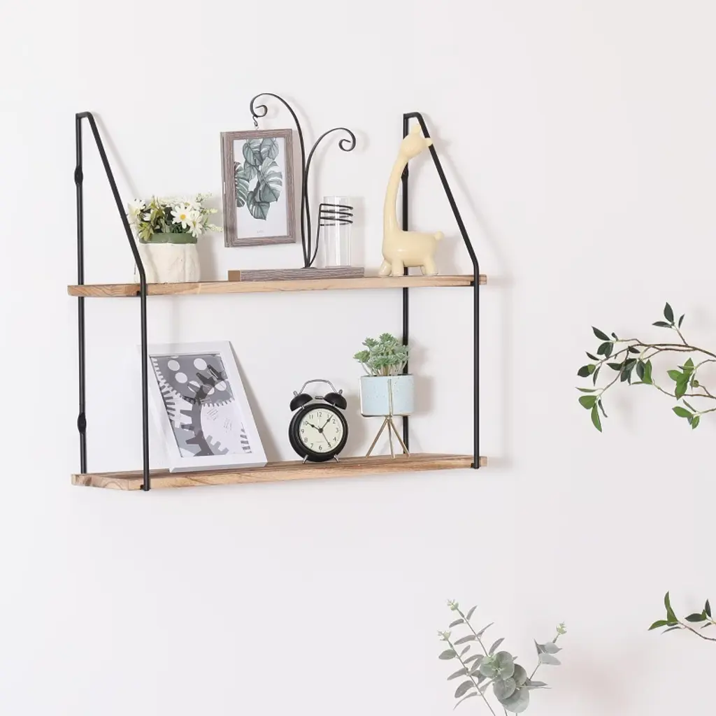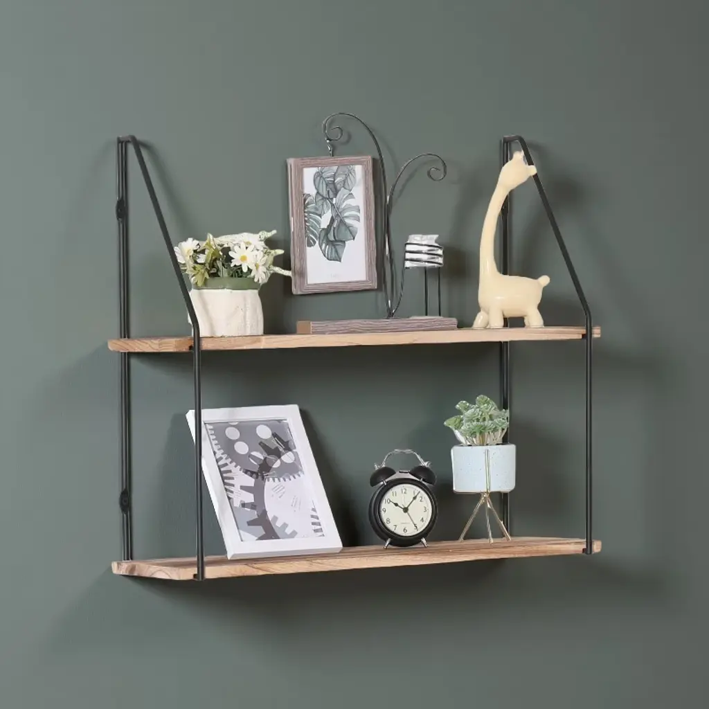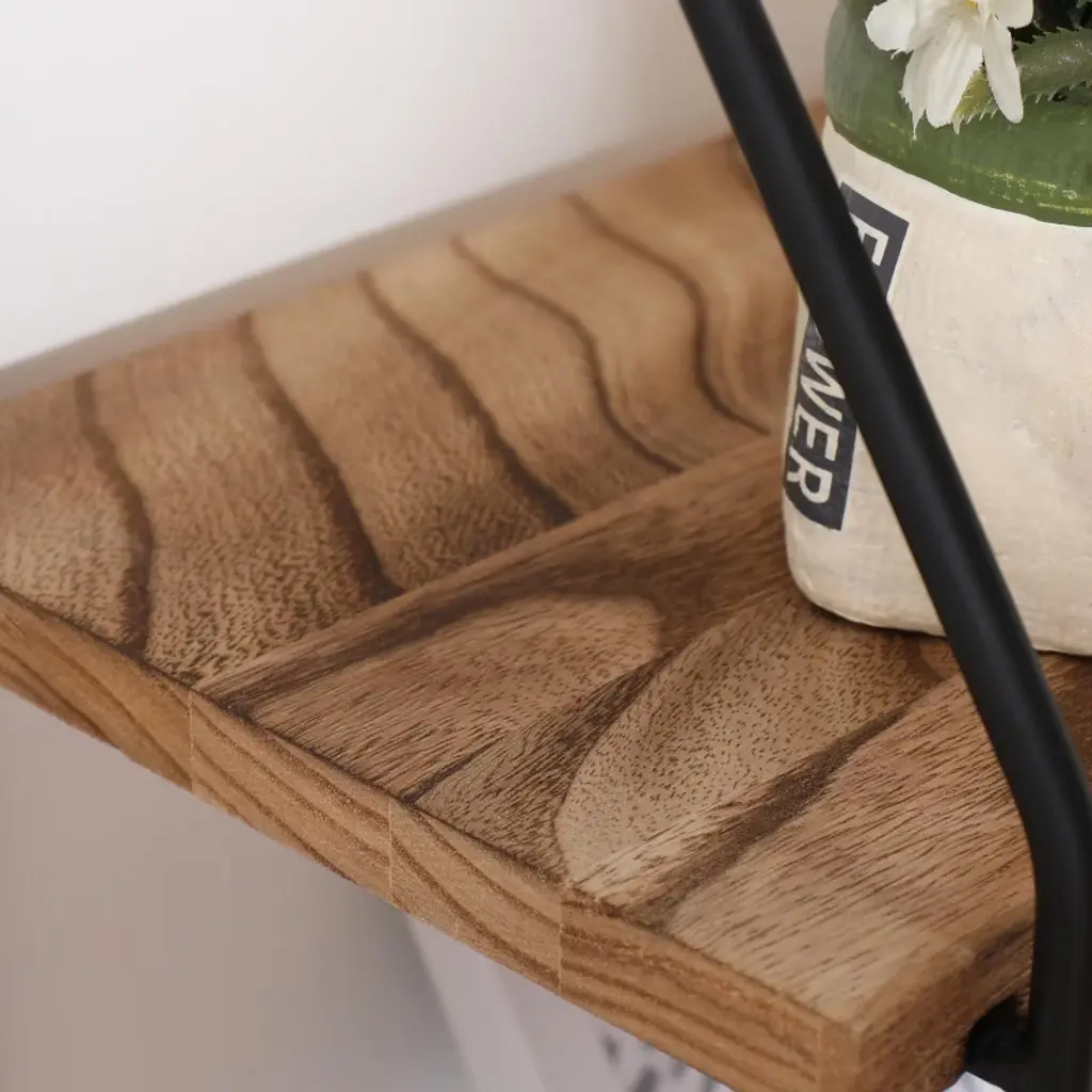 SEVOBAL set of two authentic rustic floating shelves combines vintage farmhouse appeal with industrial durability. The solid wood shelves feature unique natural markings that tell their history, while the black iron brackets provide sturdy support. Perfect for adding character and function to any room, these shelves work equally well for storage and display. Installation is simplified with the complete hardware kit and step-by-step guide.