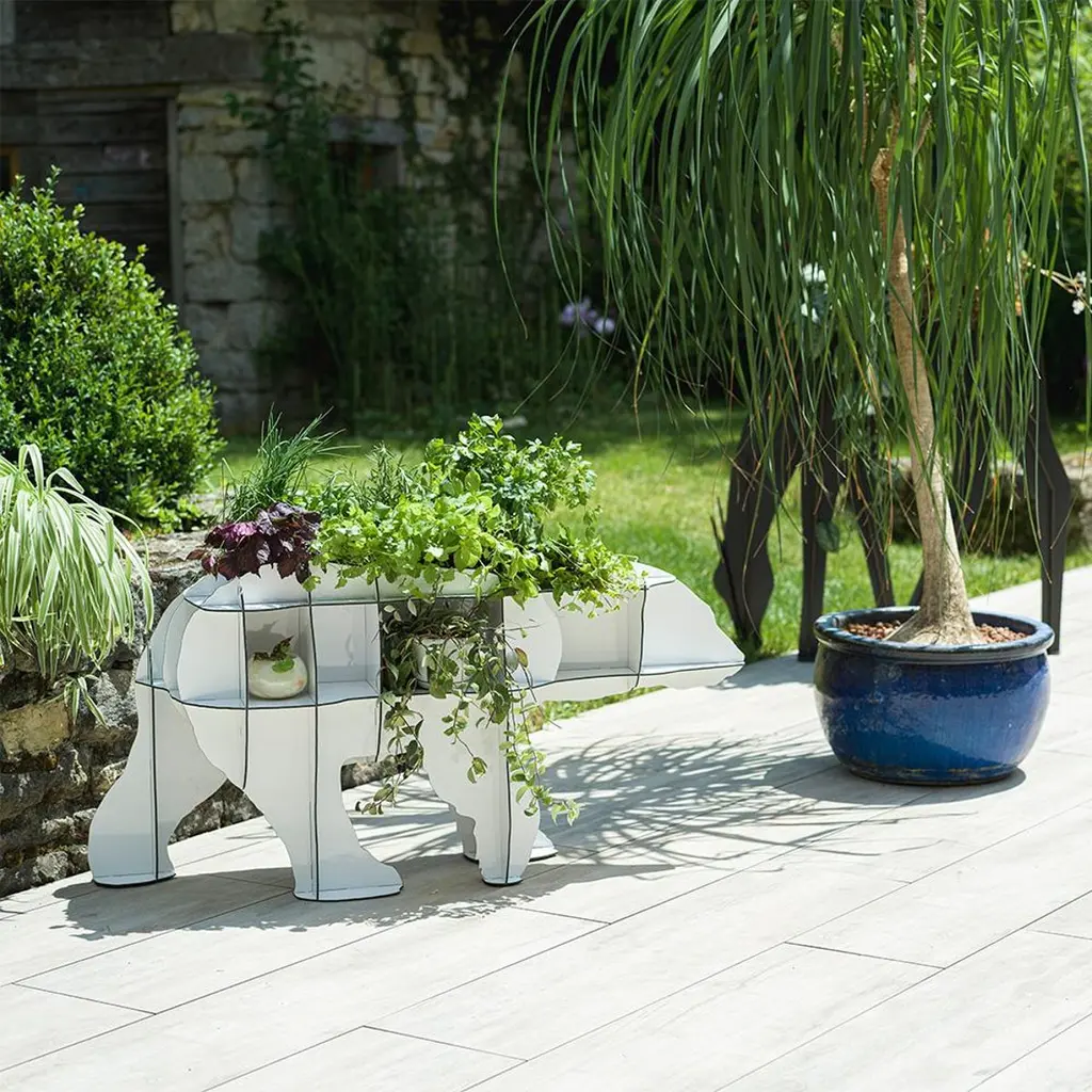 June is a versatile piece of furniture that combines functionality and design. As a storage bookcase, June fits perfectly into interiors where space is at a premium.Thanks to its lightness and mobile structure, it can easily be moved from the bedroom to the terrace, offering great flexibility of use.Its multiple small compartments make it a real storage treasure for your favorite plants, your children's games, or other small precious objects.Both warm and lively, June adds a touch of originality to any space.Small bear bookcase on the floor - Design: Rachel & Benoît Convers Material: high pressure laminate (HPL) Indoor and outdoor use Available in Matte Brushed Black, Glossy Red, Glossy Powder Pink, Matte Fern Green, and Matte White Dimensions: H.63 × L.120 × D.34 cm - Weight: 13 kg