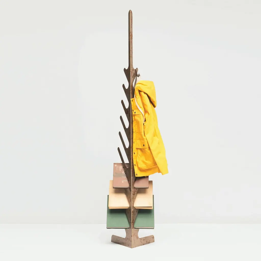Spino Stand Alone Bookshelf / Coat Hanger In Hand Treated Iron By Mario Milana