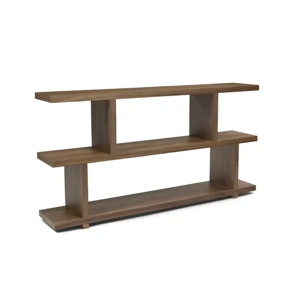 Elevate the look of a room with the addition of the Spring Bookshelf by Huxe. Its framed outline makes it the perfect piece for hosting favorite family photos and collectibles. Crafted from MDF and walnut veneer with a glossy lacquered finish, this shelf can be stacked to create more display space and add visual flair to any modern décor.
