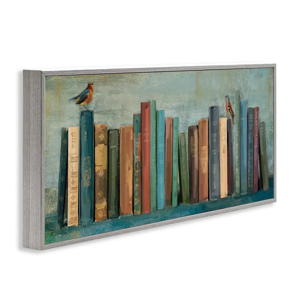 Add dimension to any room with our textured Framed Giclee Artwork. Our framed artwork is securely mounted into a 1.5-inch thick wood grain frame and ready to hang. Frames are available in three alluring styles: black, gray farmhouse and white. In addition, you should check out our oversized options if you want a statement piece. Stupell Wall Art is made in the USA.Features: Dimensions: 24 x 1.5 x 10 FramedFramed Giclee Product Sizes include 24"x10" and 30"x13". All Framed Giclee products have a 1.5" Depth.Wall Art is Ready to Hang with Hardware Free Hanging. No installation required. For Easy Set Up Lean or Layer Artwork on Shelf or Against Wall.Our giclée prints are carefully mounted on a durable MDF backing, and then perfectly finished in a 1.5 inch thick woodgrain frame. Mounted frame colors include black, gray farmhouse and white. Made In USA.Artwork Relates To: Bird, Books, Bookshelf, Reading, Bookworm, Still LifeDesign by Main Line Studio