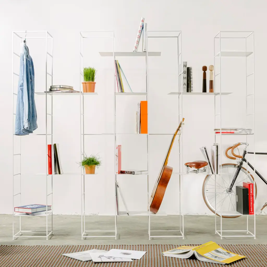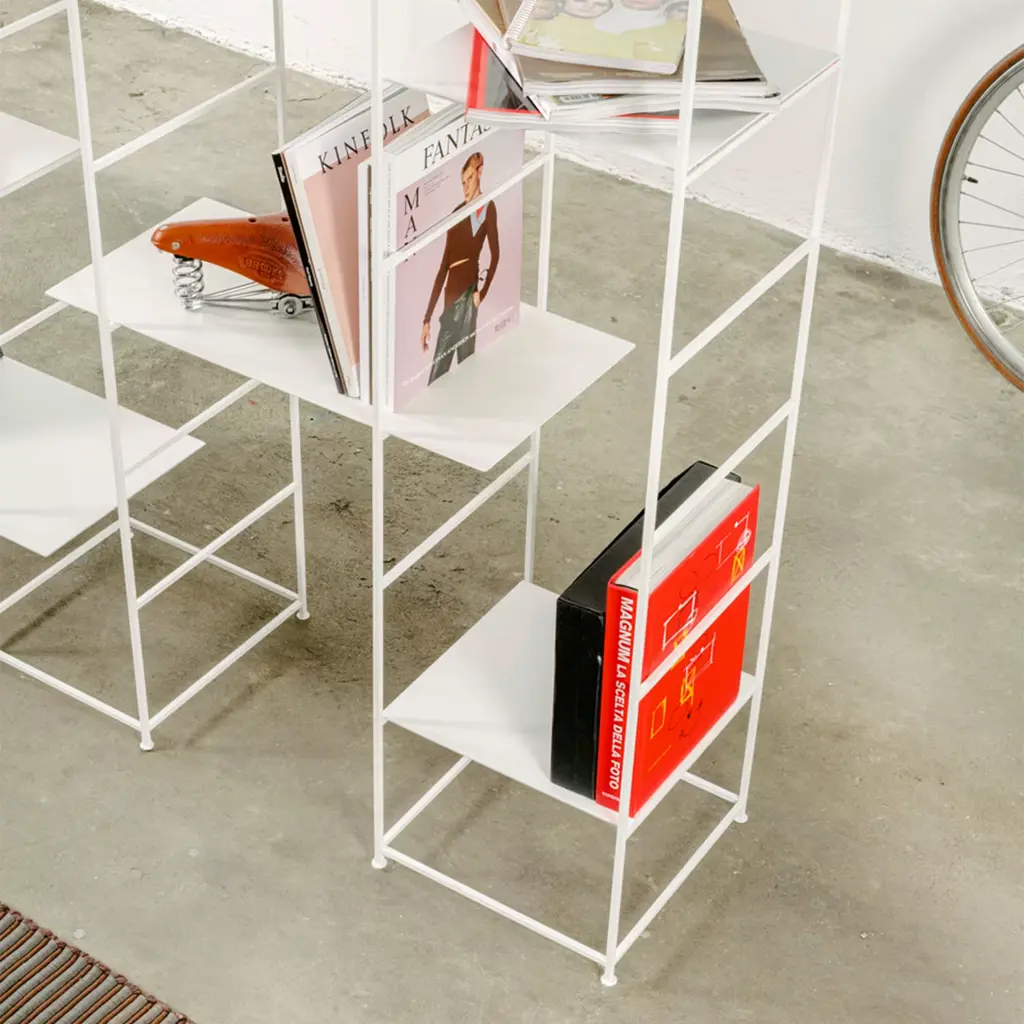This bookshelf seamlessly combines strength and simplicity. With four sturdy columns and a range of shelf configurations, it adapts to different room layouts, perfect for highlighting books or decorative items. The iron frame ensures durability while maintaining a sleek and refined appearance. The modular design invites personalization, adding a touch of contemporary charm to diverse interiors. Please contact the Concierge for technical specifications.