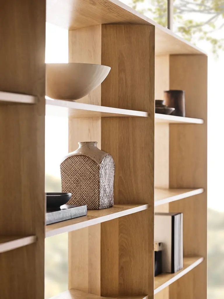 Terrazza transforms bookcase storage with unexpected angles and intersecting shapes. Triangular legs rise straight to the top, lending geo interest and a sense of movement to the bookcases' clean lines. To enhance the beauty of natural oak, the wood is gently wirebrushed and given a light ivory ceruse finish to call out the wood grain. This set of two of our exclusive Terrazza bookcases lets you instantly create a wall of open shelving in your office, library or living room.By choosing FSC ®-certified furniture, you are supporting responsible management of the world's forests.