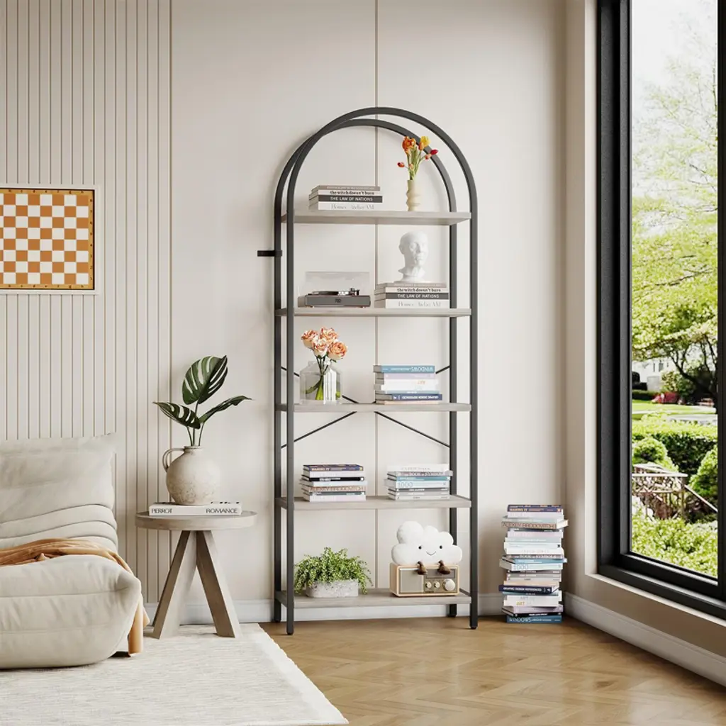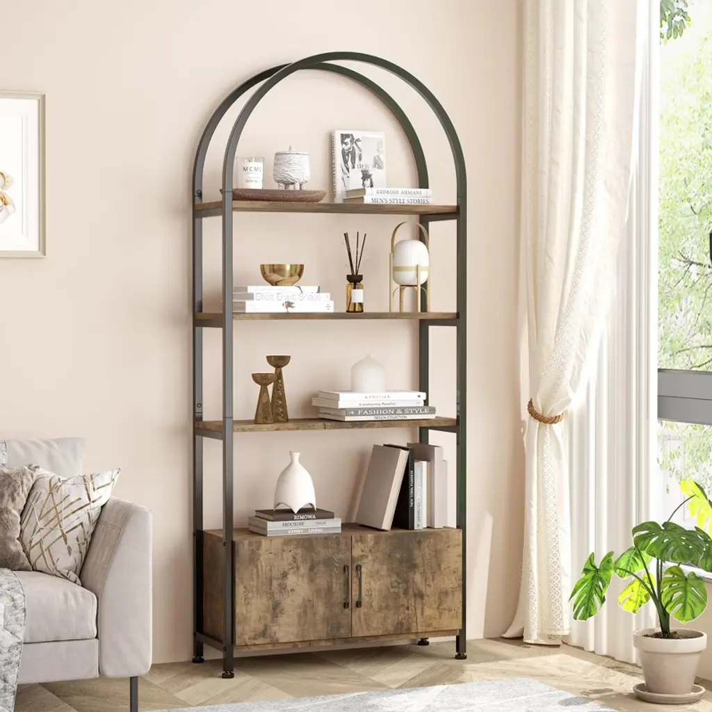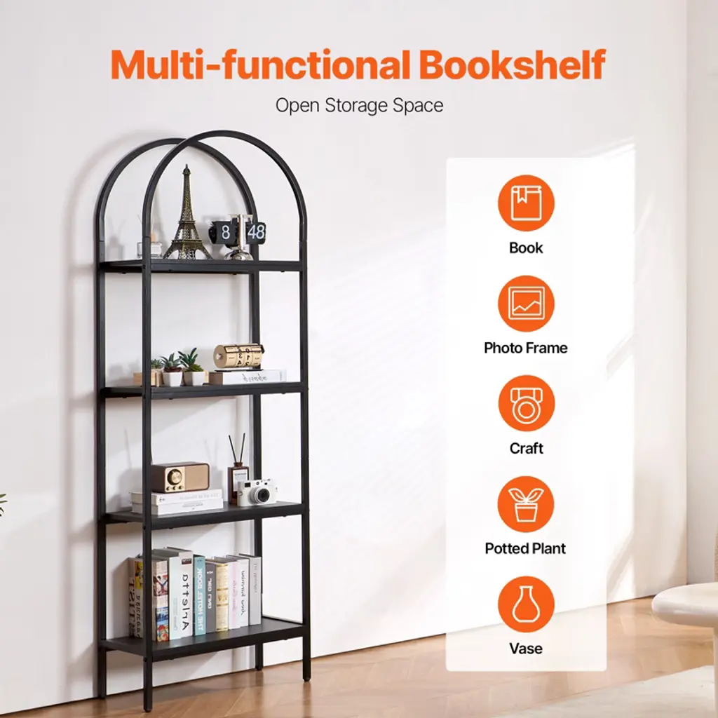 Feature: Elegant Design: This metal bookshelf features an open-shelf minimalist design that maximizes space utilization and seamlessly fits into any home decor style. It offers a refined place for your books, decor, or storage needs. Sturdy and Durable: Built with a full metal support frame, this open bookshelf is not only robust and long-lasting but also supports up to 30 lbs per shelf, ensuring your valuables are securely stored, standing the test of time. Thoughtful Details: This standing bookshelf features high-quality MDF panels with a smooth, waterproof, and scratch-resistant surface, making cleaning and maintenance easy. Adjustable foot pads further enhance its stability for stress-free storage. Effortless Assembly: Designed for simplicity, this industrial bookshelf includes detailed illustrated instructions, making setup stress-free. An anti-tip device ensures extra stability and security, providing a reliable storage solution. Versatile for Various Uses: This rustic bookshelf is more than just a bookshelf - it doubles as a bathroom rack or plant stand. It is suitable for living rooms, bedrooms, bathrooms, and more and meets your diverse storage needs. Package Content: 1 x Metal Bookshelf 14 x M6 x 34 Screws 17 x M6 x 28 Screws 24 x M6 x 10 Screws 4 x Adjustable Feet 1 x M4 Allen Wrench 1 x Anti-Tipping Accessories 1 x User Manual