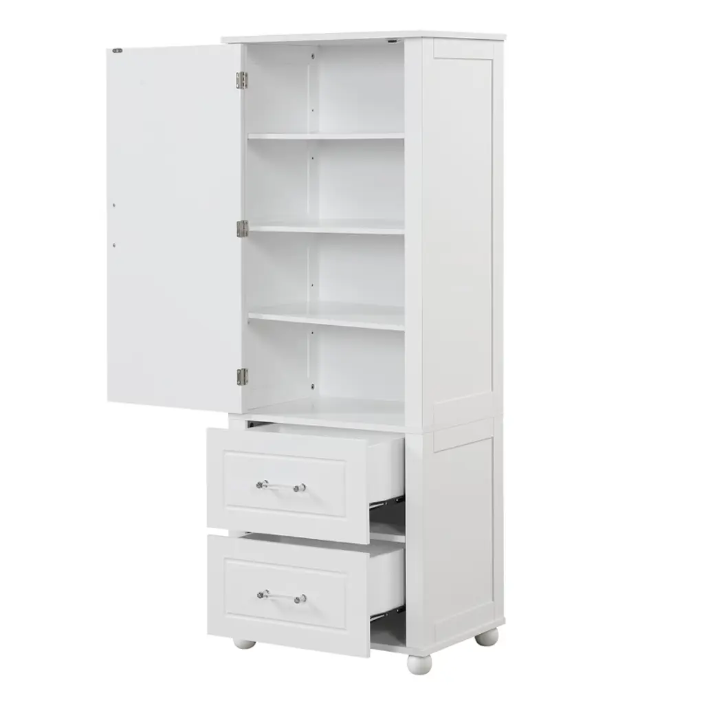 This rustic industrial bookcase seamlessly blends functionality and style, serving as the perfect storage solution for your books and decor in any living space. Constructed with solid pine wood, it offers a sleek white finish, complemented by matte black metal handles adding a modern touch, making it an ideal addition to living rooms, offices, or libraries. Features two spacious drawers for hidden storage, keeping your space clutter-free.With its 50.6 in height and ample shelving, it provides enough space to display your favorite books and stylish decor.Sturdy construction ensures it withstands the test of time, providing reliable support for heavy books.The rustic industrial design pairs well with various interior styles, from modern to traditional, enhancing the aesthetic appeal of your room.Wall-mounted design adds safety while maximizing floor space, making it perfect for smaller rooms.
