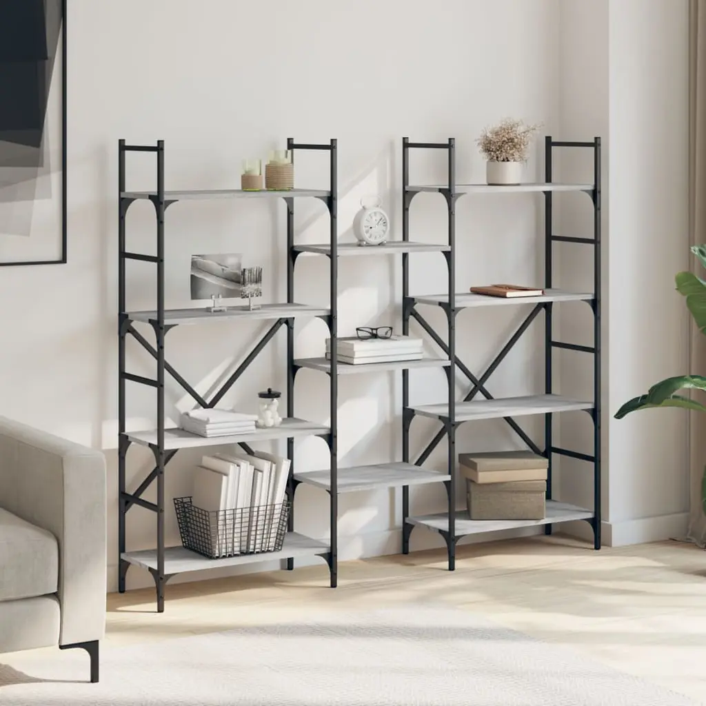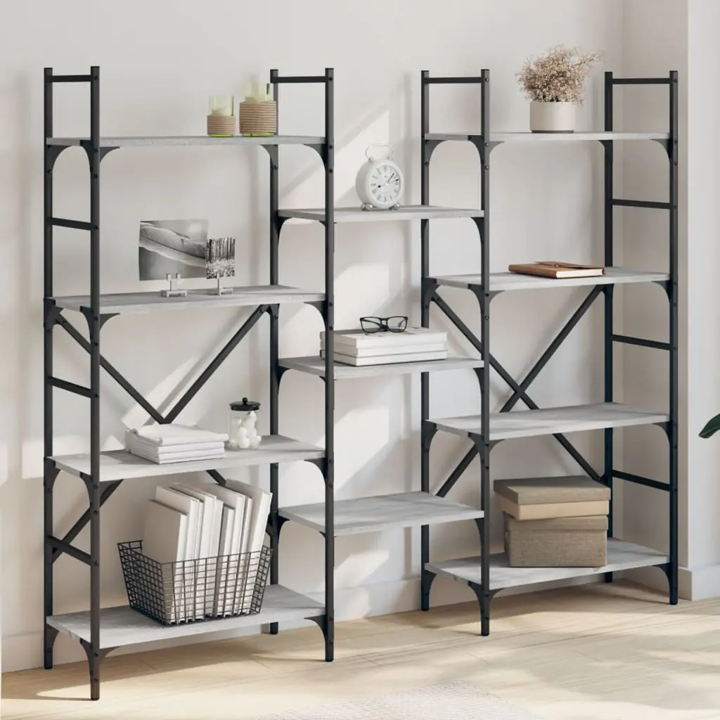 Vidaxl Bookshelf Grey Sonoma Engineered Wood, Powder-Coated Steel Tall