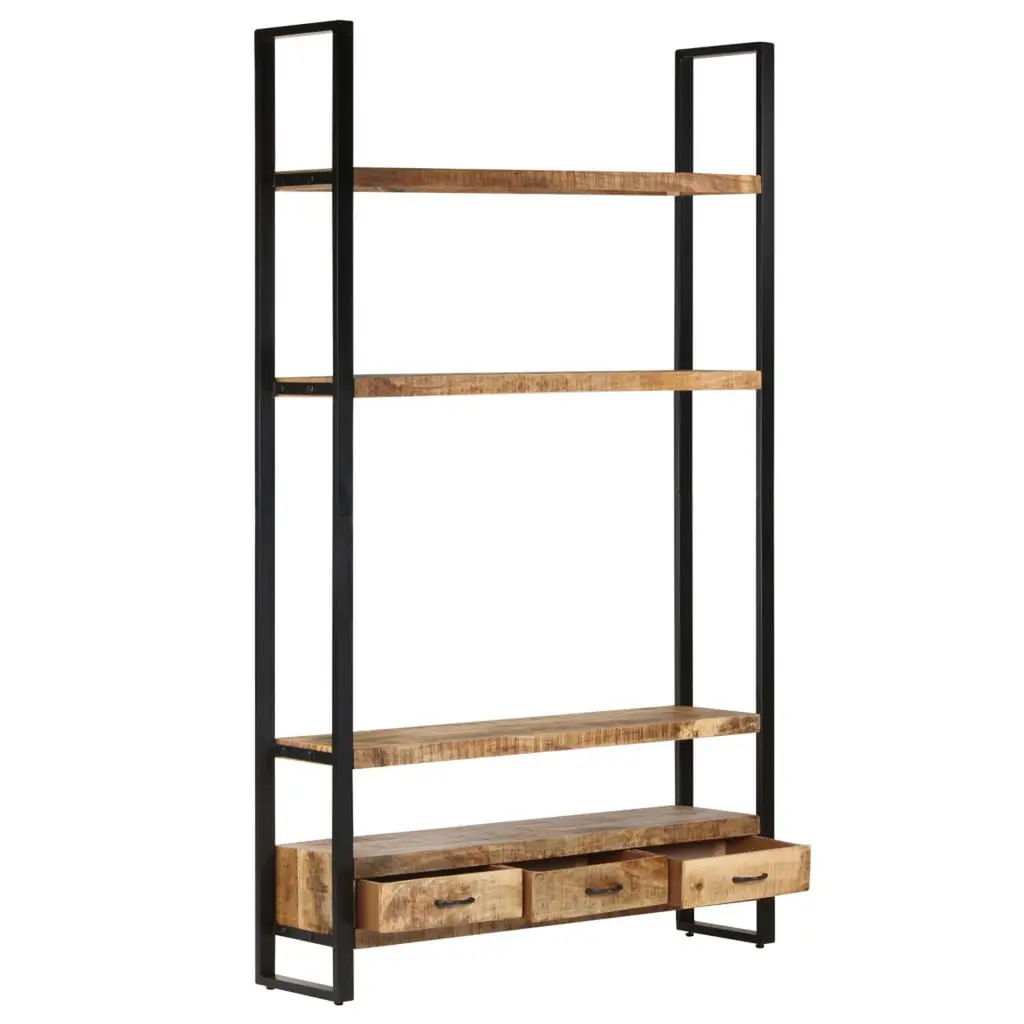 This Rustic Solid Mango Wood Bookshelf is a stunning piece that mixes functionality with style. It's perfect for your living room, office, or bedroom. Made from solid mango wood with a sleek black metal frame, it brings rustic charm with a contemporary touch, fitting in with all kinds of decor effortlessly. Spacious Shelves: Comes with three solid mango wood shelves for loads of space for books and bits and bobs. Perfect for keeping it all organized! Unique Design: Each bookshelf is crafted from solid mango wood, boasting its own grains and textures. No two are alike, making your piece truly unique! Stability and Safety: Wall-mount option makes it secure, especially if you've got heavy books on it. Easy Maintenance: The rustic finish is a breeze to clean; just wipe it with a dry cloth. Keep it out of direct sunlight to maintain its rich colors. Stylish Versatility: Its rustic vibe lets it fit into lots of settings, be it the living room, office, or a cozy reading nook. It adds character while providing essential storage.