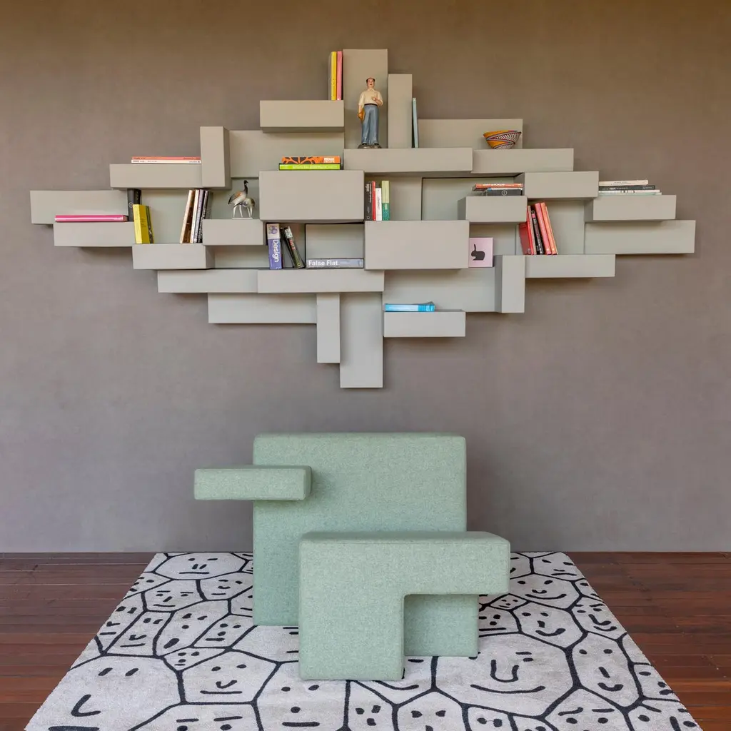 The Primitive bookshelf was one of the strongest and most iconic products designed by Studio Nucleo. Initially made as a limited-edition product, this bookshelf is now industrialized by Qeeboo and re-proposed in a polyethylene version with rotational molding in order to make it accessible to everybody.The product consists of a module that can create sculptural representations and can create a bigger bookshelf adding a second module to the first one.“Primitive as primary geometric figure.Primitive as computational geometry of simple solid objects. Primitive as primeval, coarse and unconstrained objects.Primitive aims to fragment and destruct.To reduce aggregated forms to the most elementary geometry.Nothing more and nothing less than volume, it bears structure, strength and the vital consistency of the materials.Primitive evokes the paradox between the movements of the 20th century, from cubism to abstract art, constructivism and suprematism, exposing the double meaning of rationalism and its primordial geometric spontaneity.”By Piergiorgio Robino & Stefania Fersini.