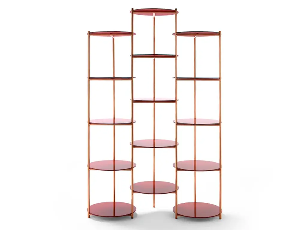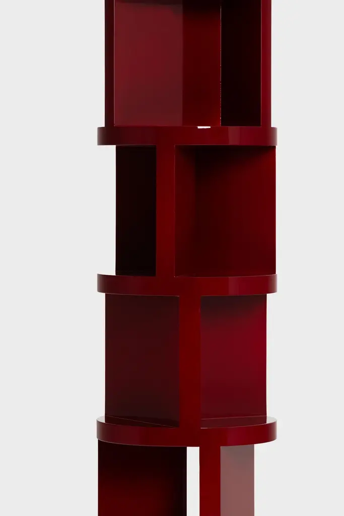 Wilma Red Bookshelf In Metal And Liquid Ceramic By Matteo Cibic