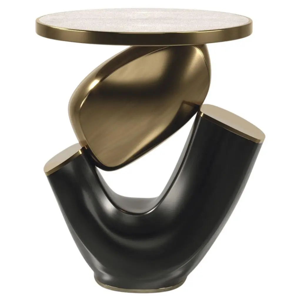 Zigara side table is a statement of artistry and precision, blending luxurious materials with functional elegance. Its striking top is crafted from stainless steel with a warm brass finish, showcasing an intricate zig-zag pattern that requires dozens of hours of meticulous handwork to achieve. The structure, in refined lacquered wood, offers a sleek and contemporary foundation, while the integrated bookshelf adds practicality without compromising design. Perfect for living rooms, reading corners, or refined office spaces, this side table combines sculptural beauty with everyday usability — a true testament to craftsmanship and bespoke design for discerning interiors. Available in standard dimensions or fully customizable to suit your space and design preferences.