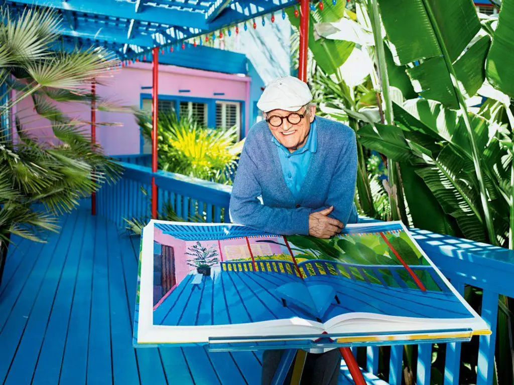 Autographed David Hockney "A Bigger Book" Painting Collection With Book Stand Collector's Edition