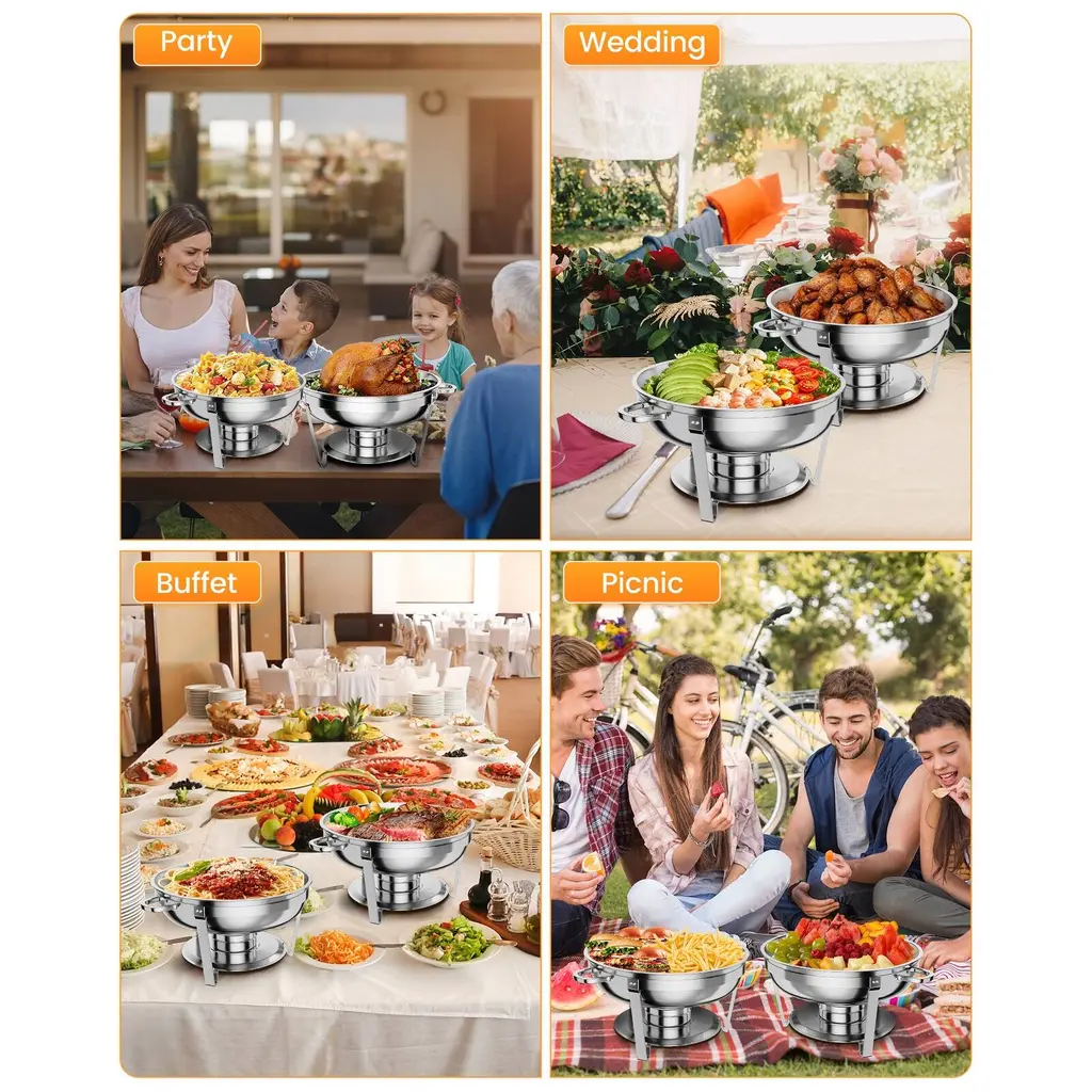 5Qt Hot Pot Buffet Set 4 Piece Set, Food Warmer And Server Round Stainless Steel Hot Pot - 5L 6-Piece Set