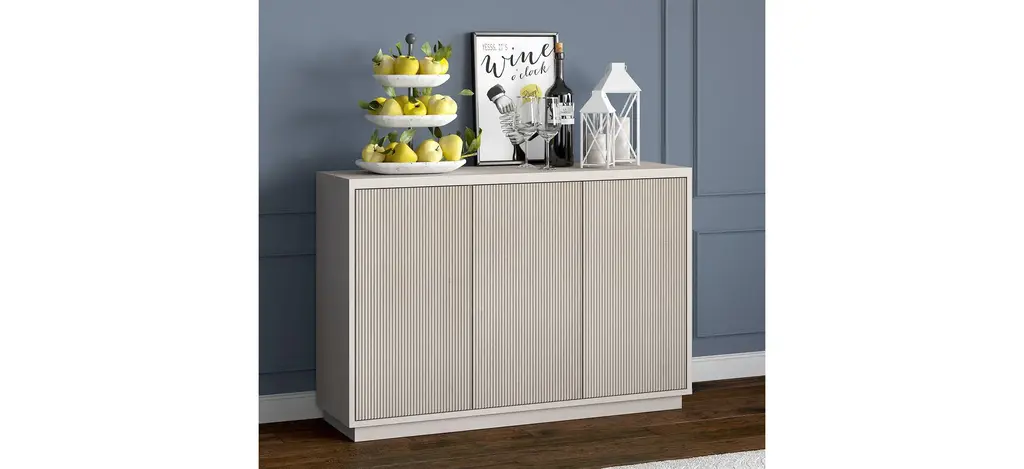 This versatile Alston Buffet Table is the ultimate functional display piece. The clean-lined design includes plenty of storage, with two large enclosed cabinets featuring interior adjustable shelves to neatly organize your glassware, linens, and those fancy dishes you really should be using more often. Leveling feet and adjustable Euro door hinges ensure everything sits just right, and cable management cut-outs allow you to easily store and charge small appliances. Whether placed in your dining room or kitchen as a traditional buffet, or your living room for additional storage, this sturdy and spacious piece creates endless options for entertaining. From holiday dinners to your next group game night, get ready to be the host with the most!