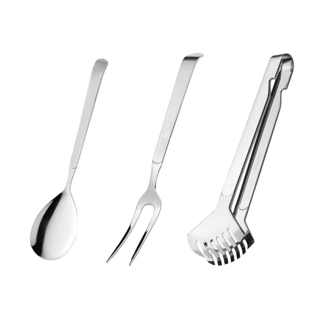 The Amefa Buffet series offers a wide range of serving essentials, perfect for professional settings like hotels, restaurants, and banqueting events. The 3-piece Charcuterie Set includes a 7" Cold Meat Fork, an 8" Small Serving Tong, and a 5.5" Snail Tong—each crafted from premium 18/10 stainless steel. Featuring satin finish handles to prevent finger marks, this elegant and practical set is also dishwasher safe for effortless cleaning.