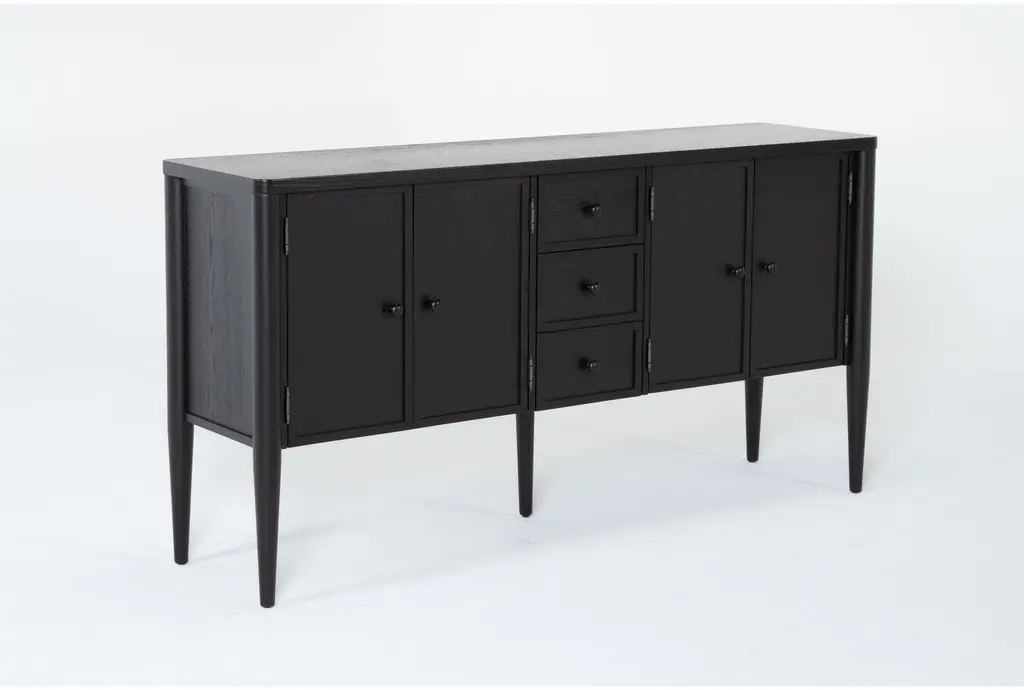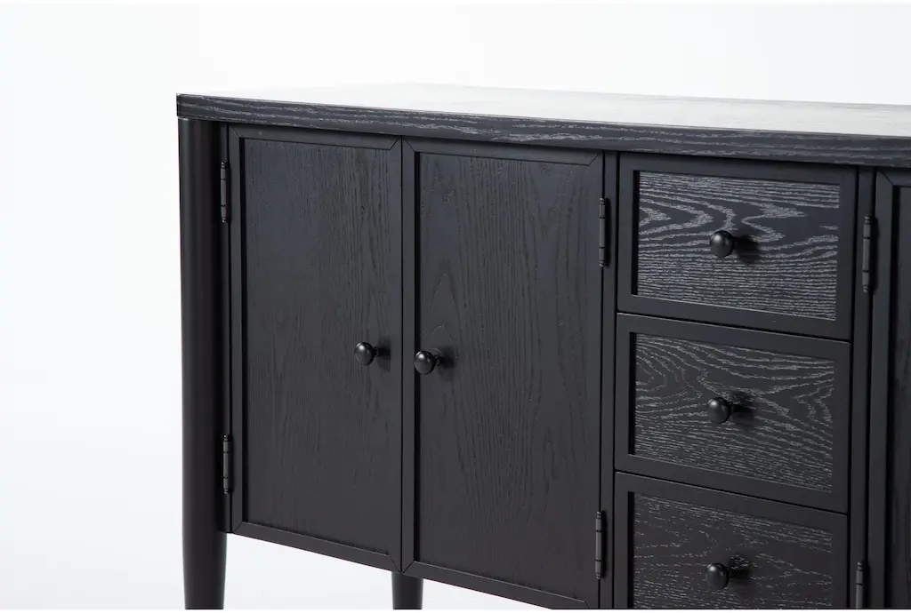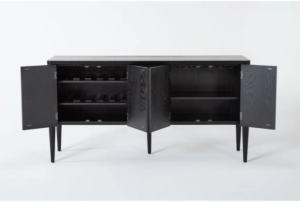 Austen Black Wood 4 Door 3 Drawer 70" Sideboard Buffet | Storage | Shelves