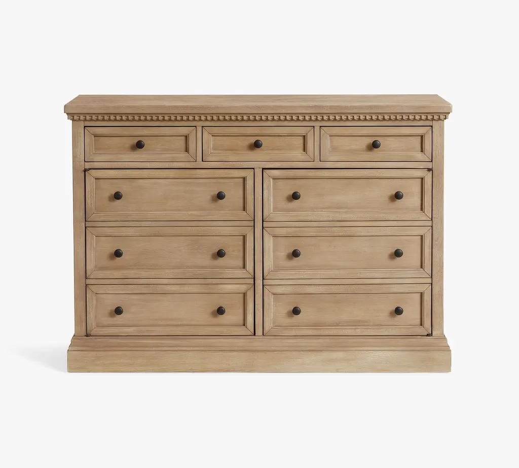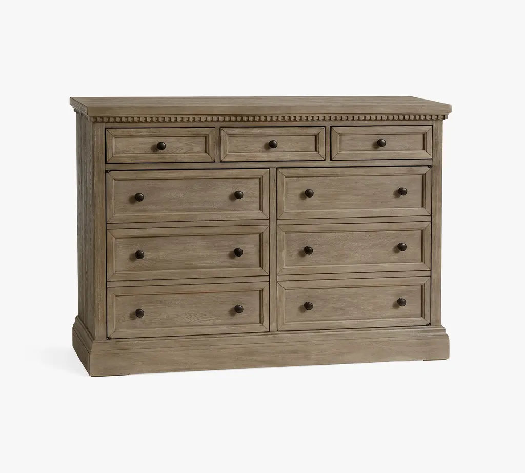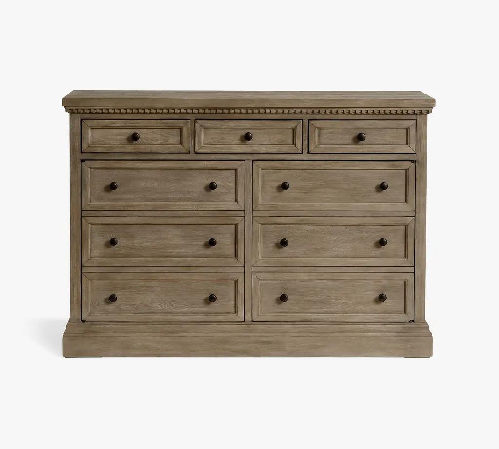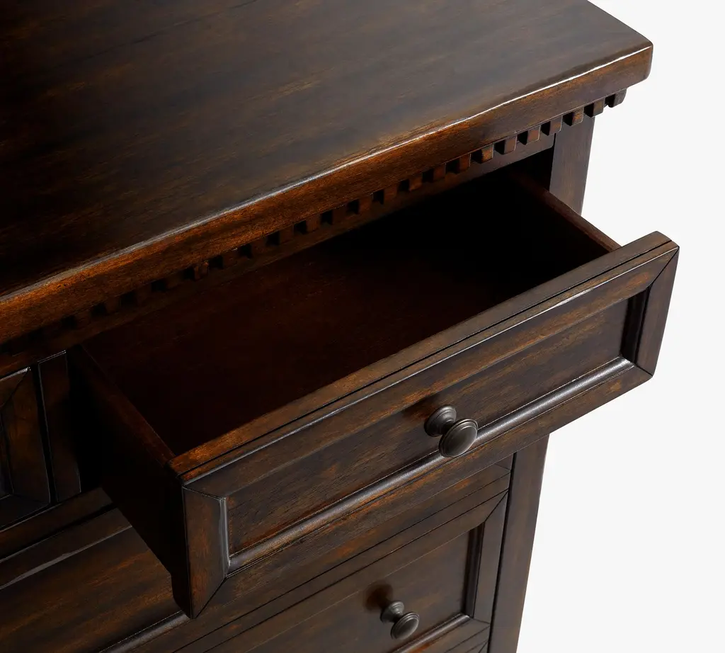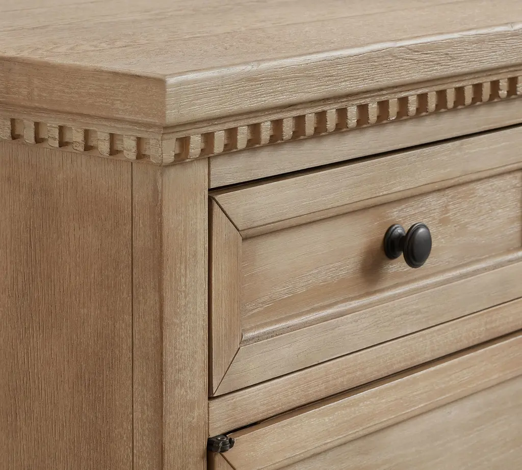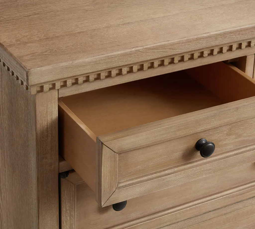 With its rustic beauty, this dining room essential imparts the look of an antique. Discreet and adjustable shelving lies behind a pair of faux-drawer overlays in the Banks Buffet, and drawers provide quick access to essentials.