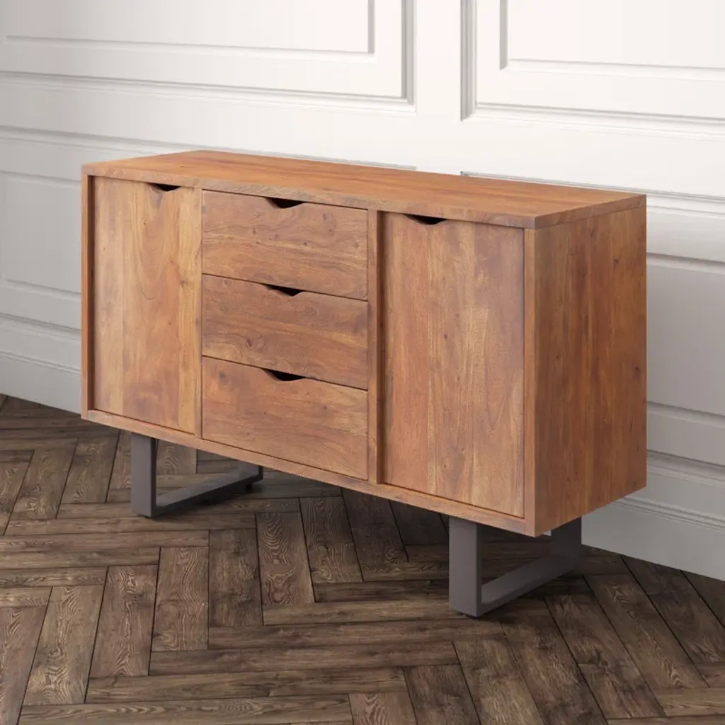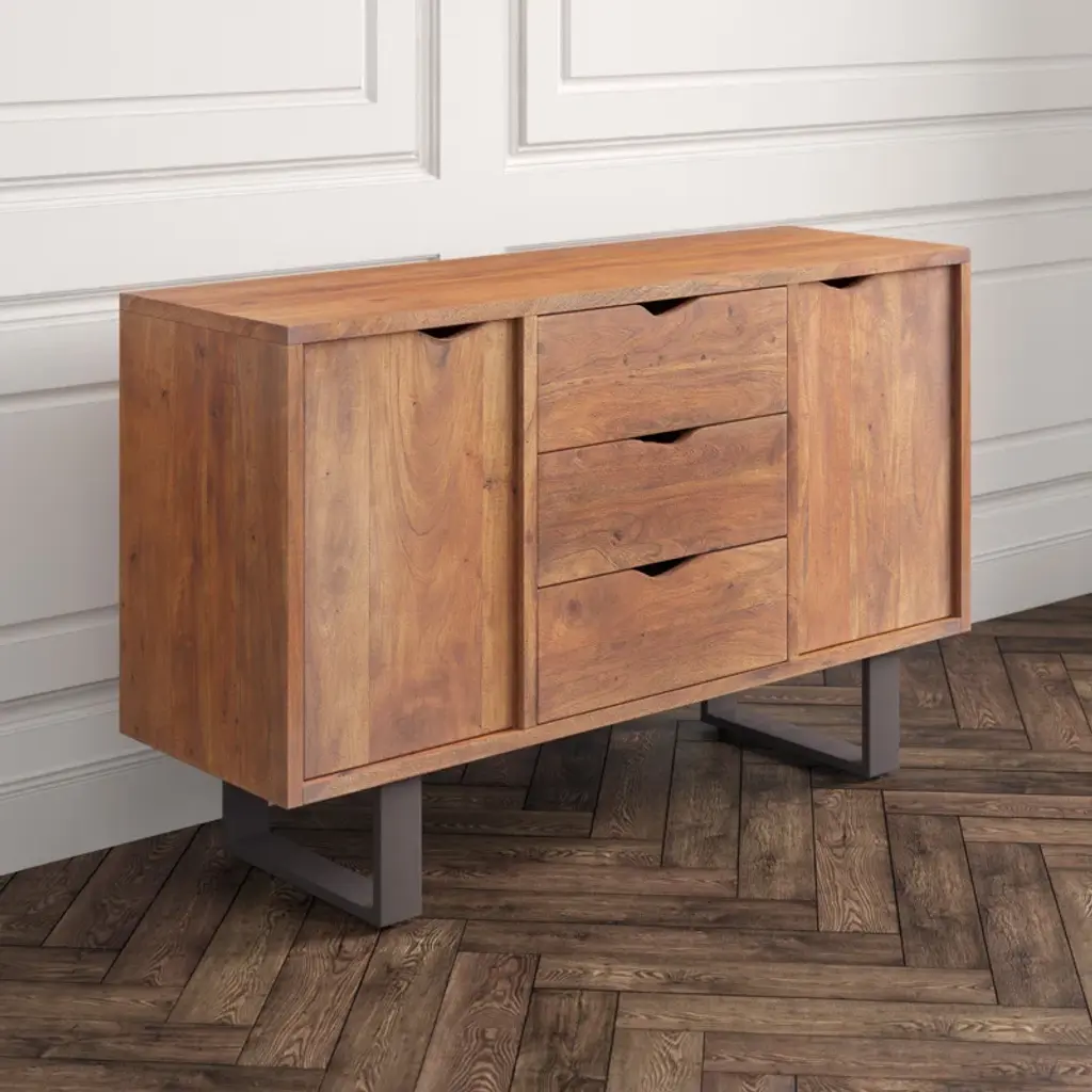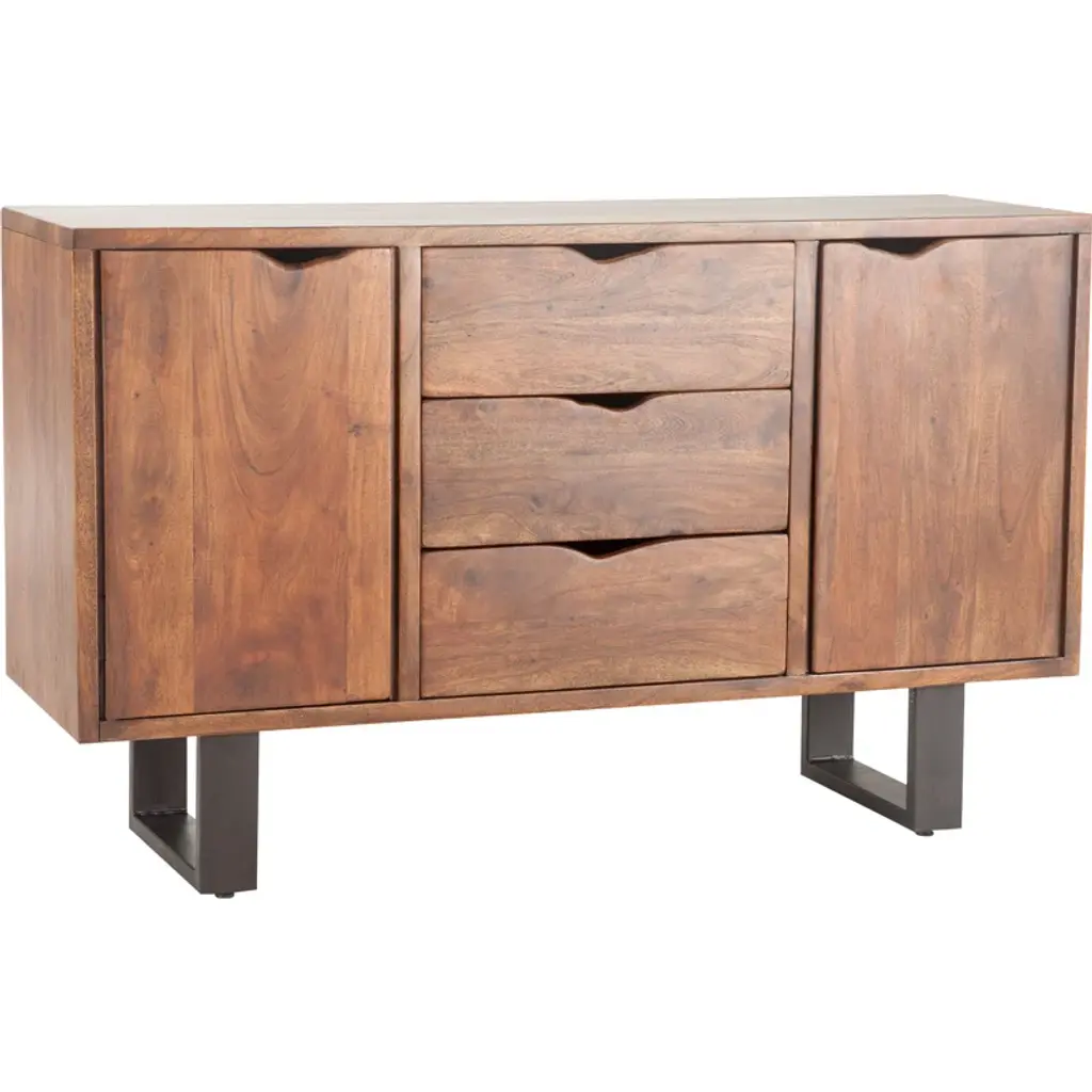 Anyone who thinks that storage can't look good hasn't met this sideboard. With it's streamlined silhouette, tapered dowel feet, and herringbone design, it delivers a look that's totally mid-century. Crafted from solid acacia wood, it features three drawers on roller glides and a two-door cabinet with an interior shelf, so stashing spare plates or dining linens is easy. Plus, it has a marble counter. (Can you say, easy to clean + stylish?) This sideboard measures 29.5'' H x 62.9'' W x 17.7'' D, so it's ideal in dining or living rooms.