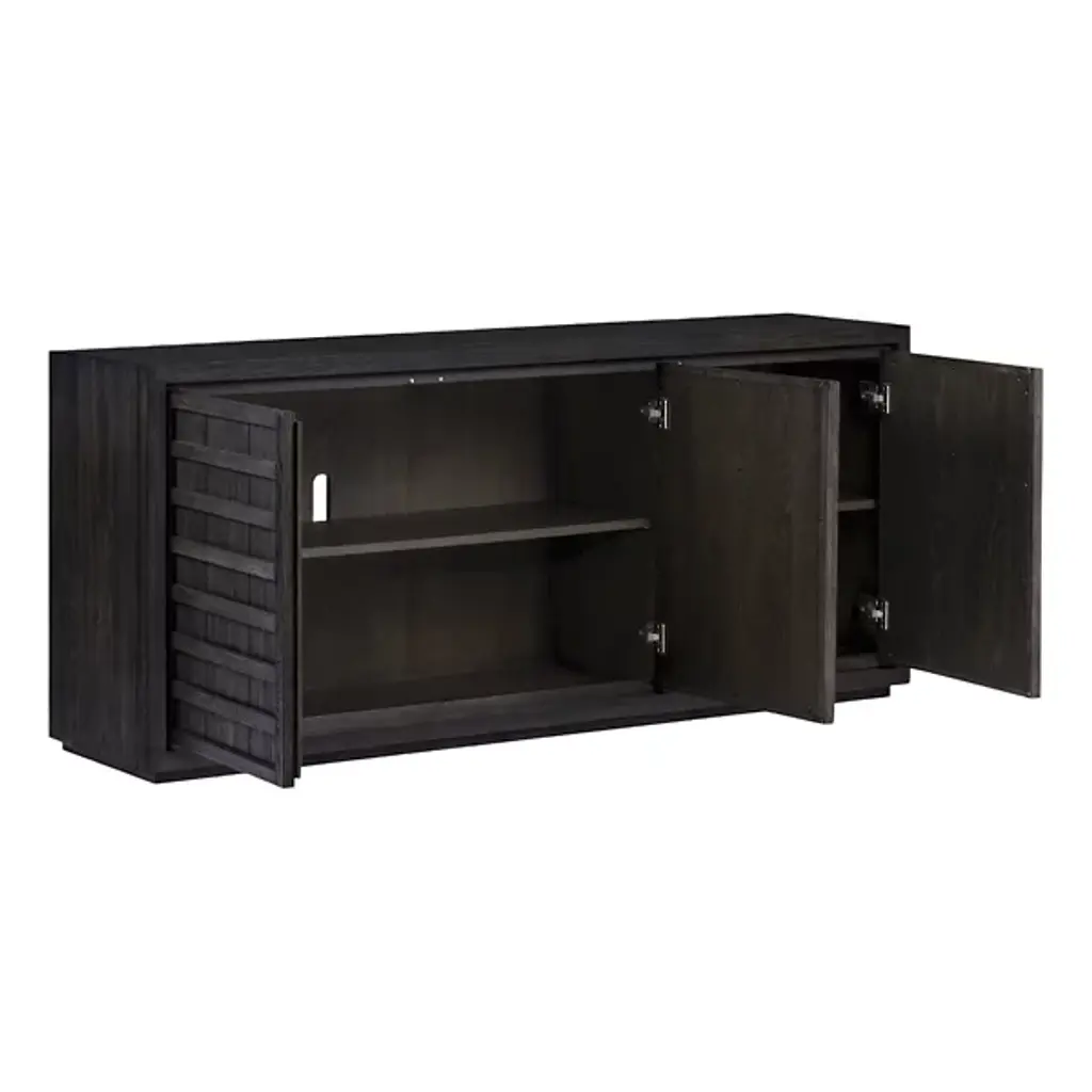 The Britton 3 Door Buffet from Alder & Ore showcases the magic of wire-brushing, which reveals each piece’s unique wood grain patterns. Behind its push-latch doors, adjustable shelves await any organizational task, while the buffet's facade, inspired by English windowpanes, adds an architectural aesthetic that is both stylish and versatile. Crafted from a thoughtful mix of oak, pine, and engineered materials, this piece is ideal for housing your finest china or accommodating everyday essentials.