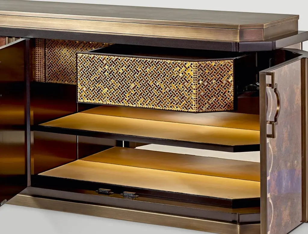 Buffet Bronze Leaf Glass Drawers Decoreted Tiny Mosaic Gold Mosaic Dec On Doors