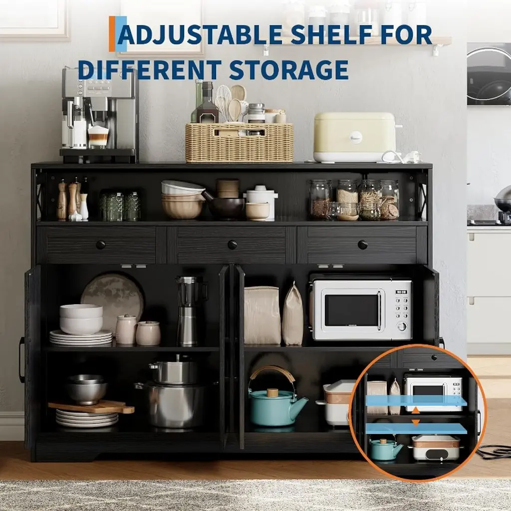 Buffet Cabinet With Adjustable Shelves, 4 Doors ,3 Drawers Kitchen Storage Cabinet