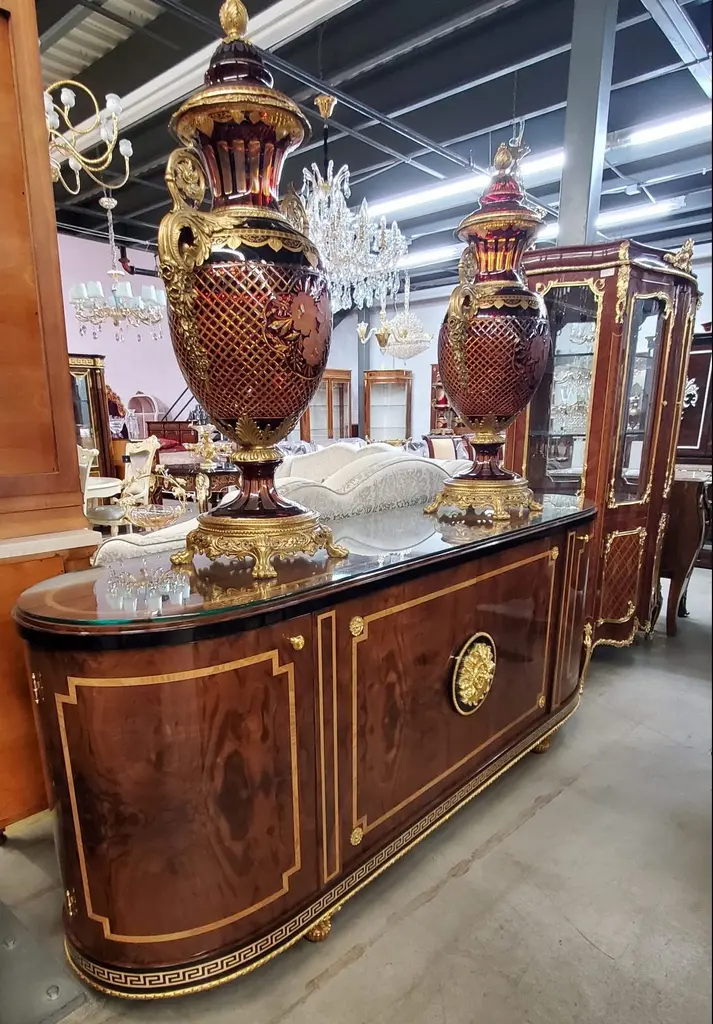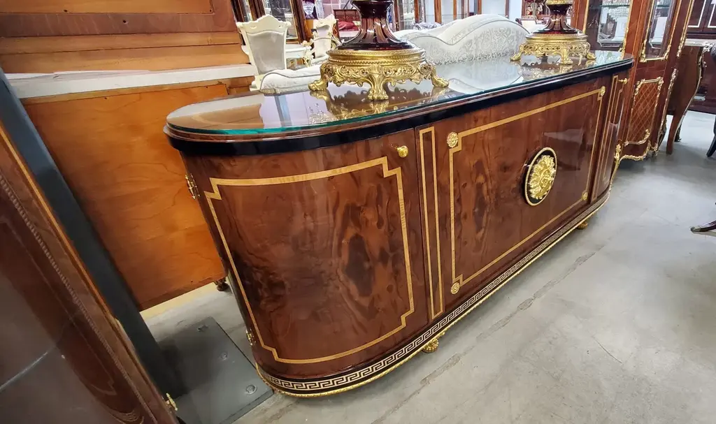 Features a very elegant and aesthetically pleasing server buffet that is handmade and made of all solid wood.