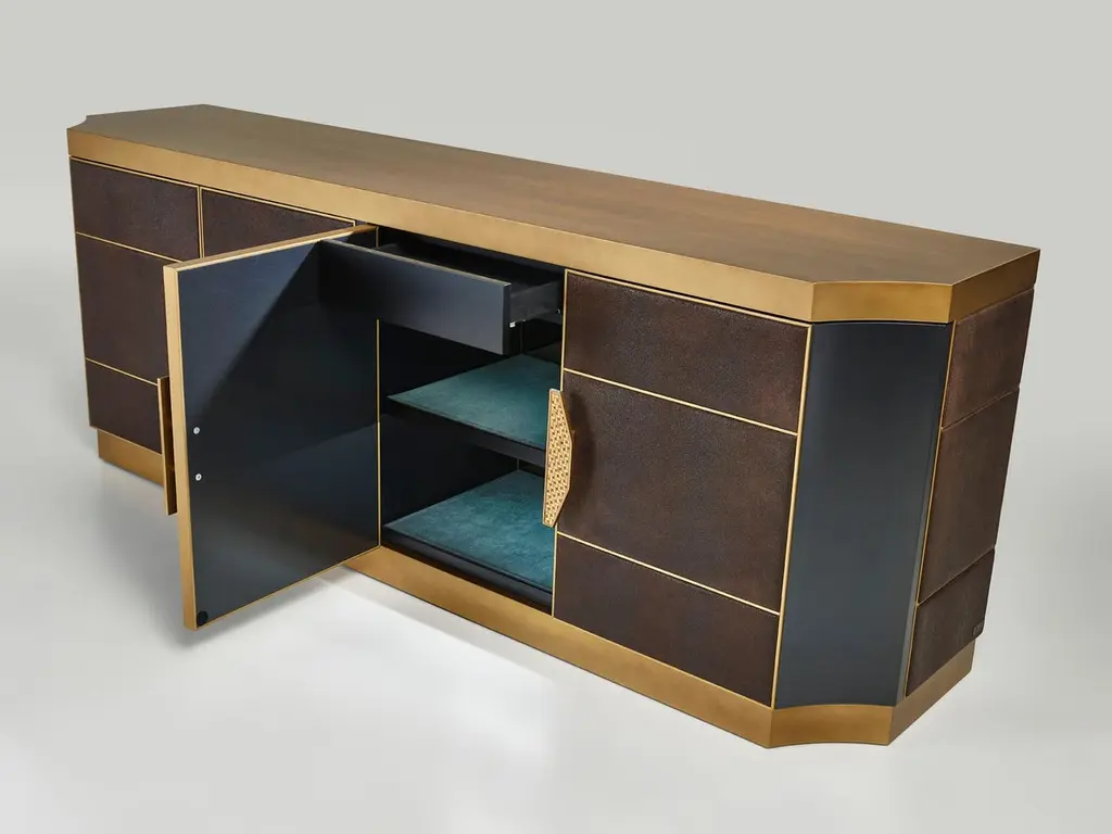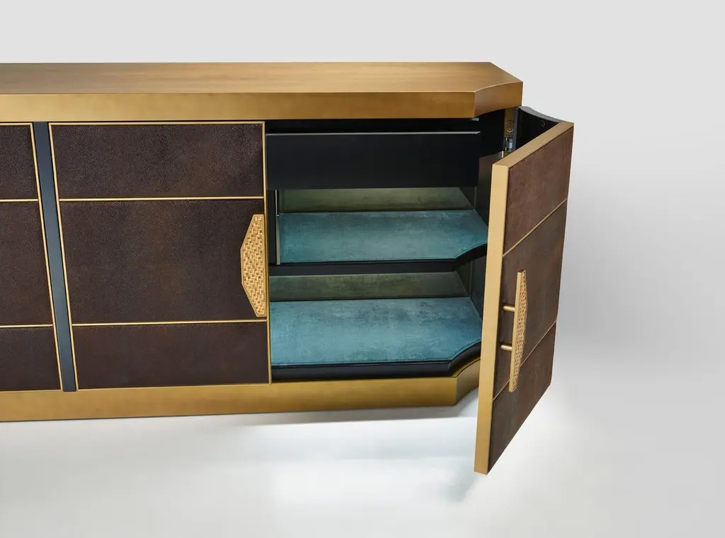 Buffet Structure Antique Bronze Finish Side Upholstery With Leather Led Opening