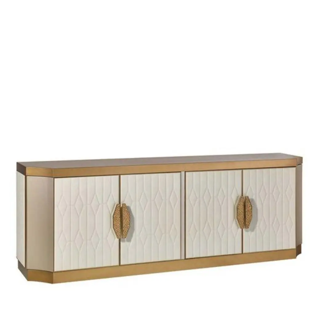 Buffet Structure Distressed Paint Finish Quilted Fabric Led Lightening Opening