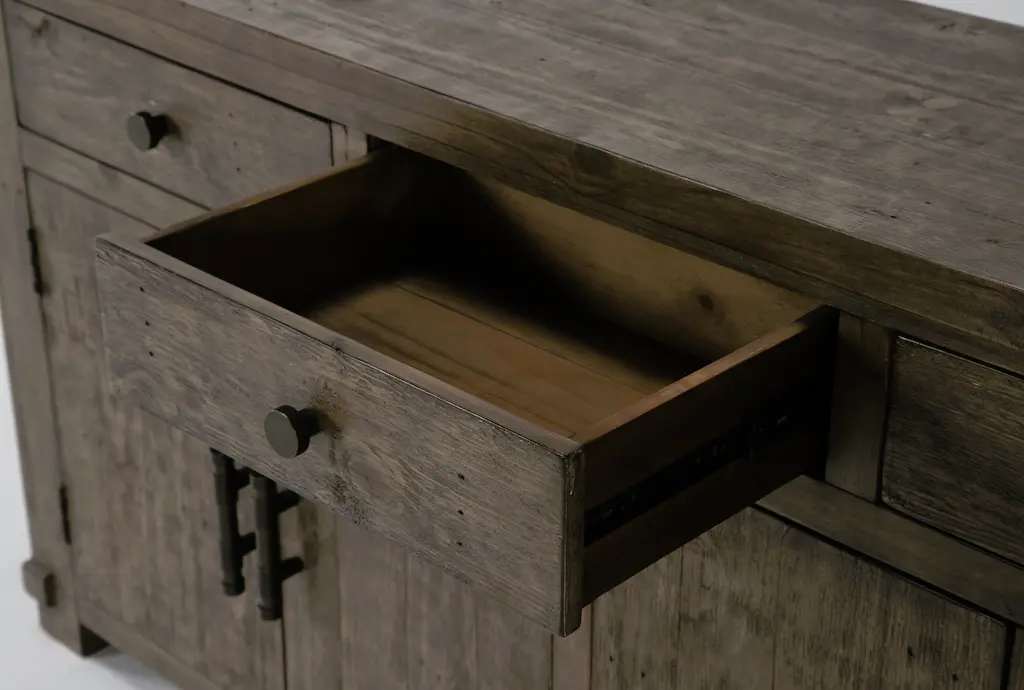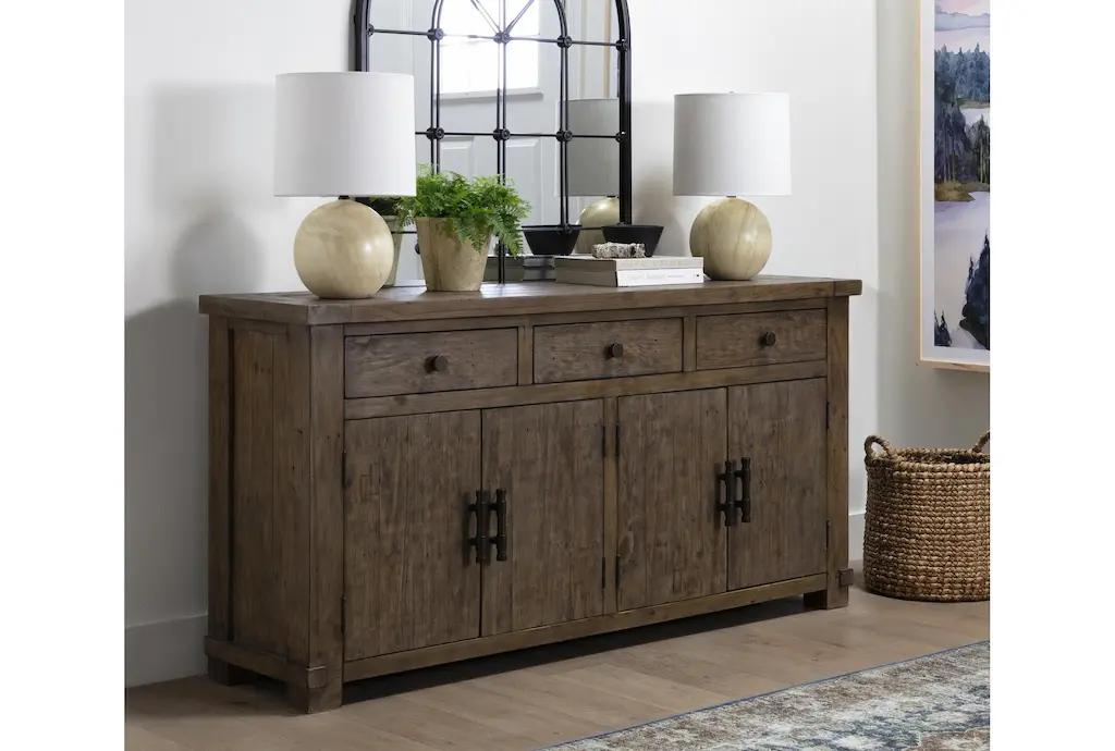No matter how casual or formal the meal, our Caden buffet helps you host quite the feast. Made from a combination of sustainable, FSC® certified, plantation-grown pine, and reclaimed woods sourced from shipping pallets and packaging crates, this handcrafted design features a hand-distressed finish that highlights the wood’s authentic grain, color and texture variations. Because reclaimed wood contains genuine imperfections, this piece is truly one of a kind.