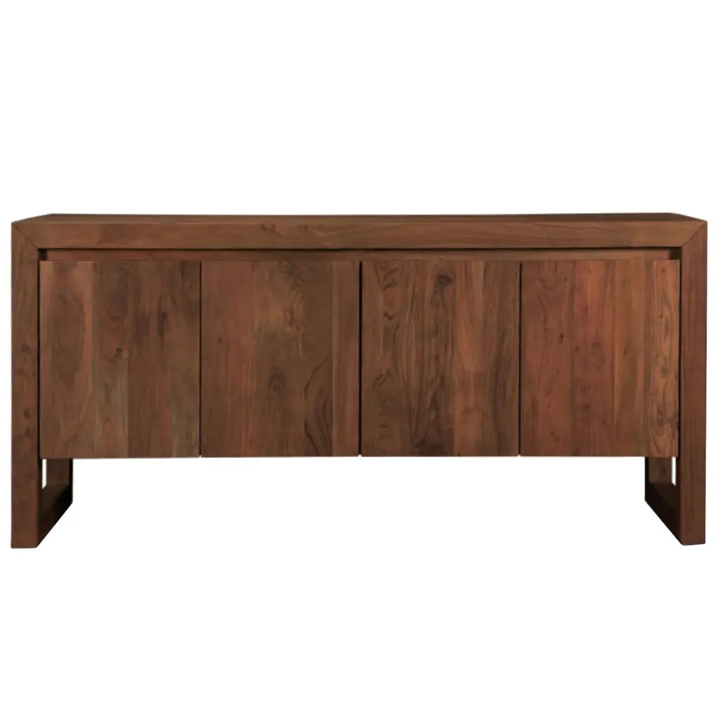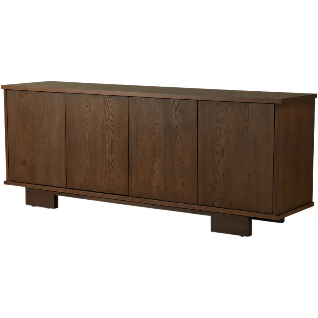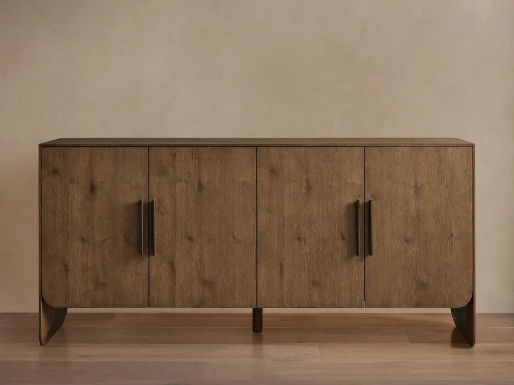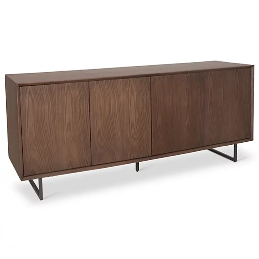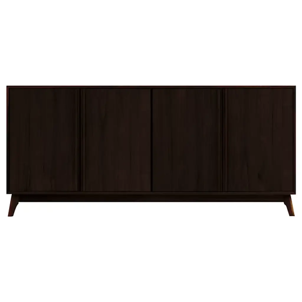 As an exemplar of mid-century modern influenced design, the Copeland Furniture Catalina 4 Door Buffet is clean and modern, yet familiar and comfortable. It is made entirely out of American Black Walnut or Solid Cherry Hardwood. Atop a subtly splayed base, four doors open to two separate cabinets, both with adjustable shelves. The integrated door pulls ensure a seamless look.
