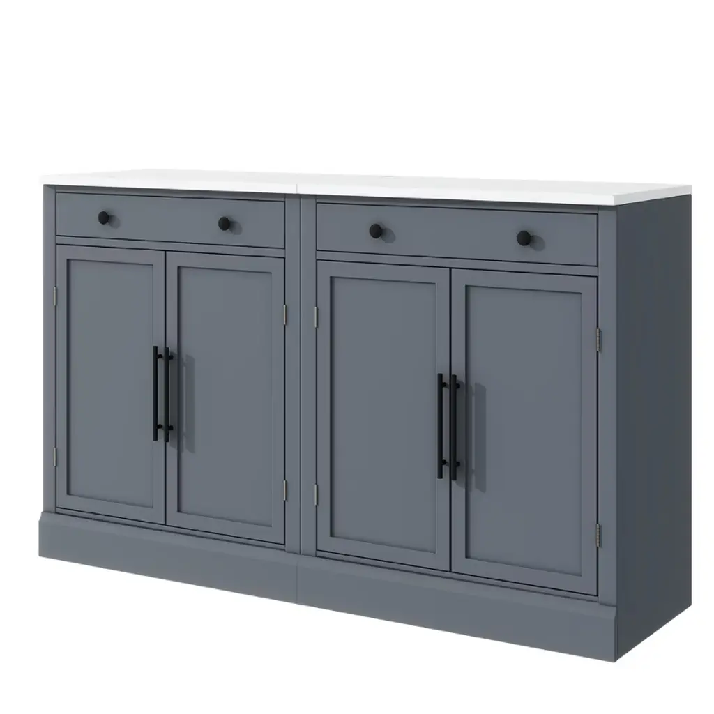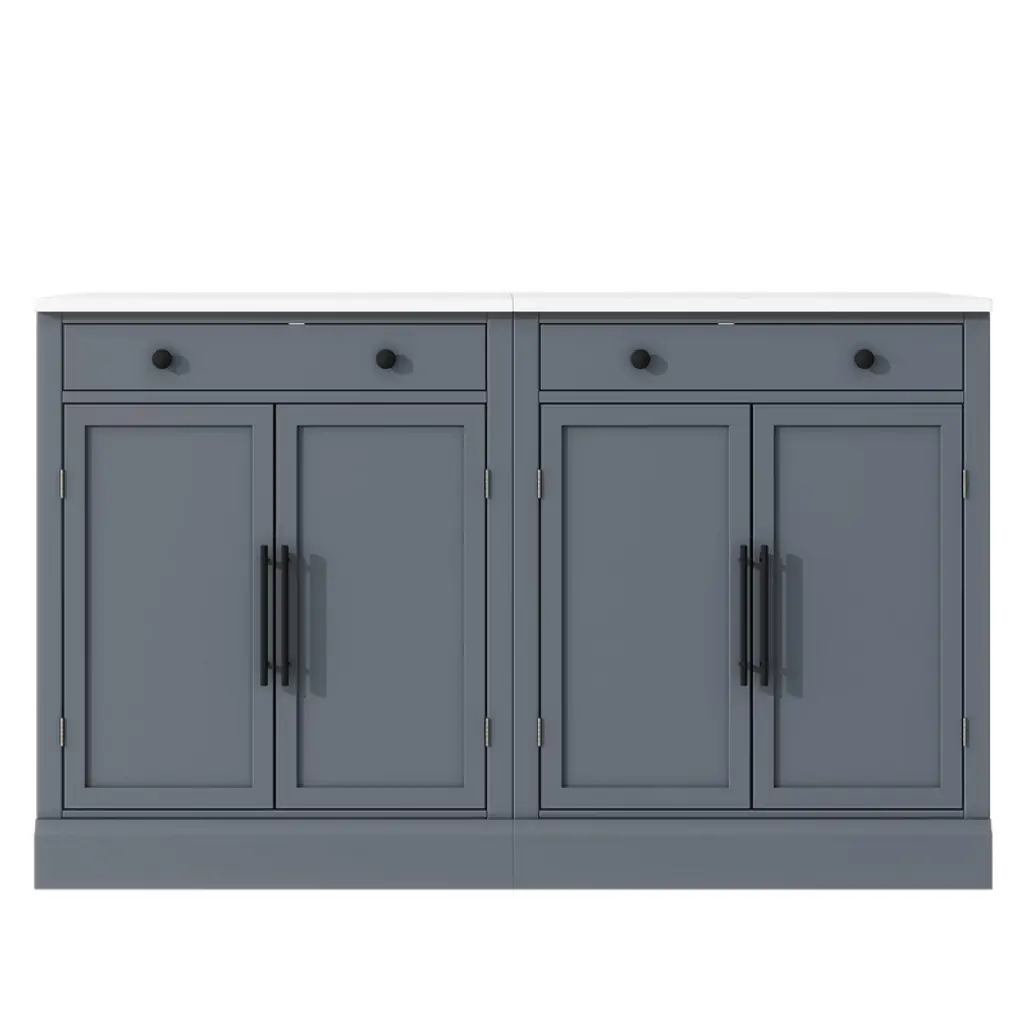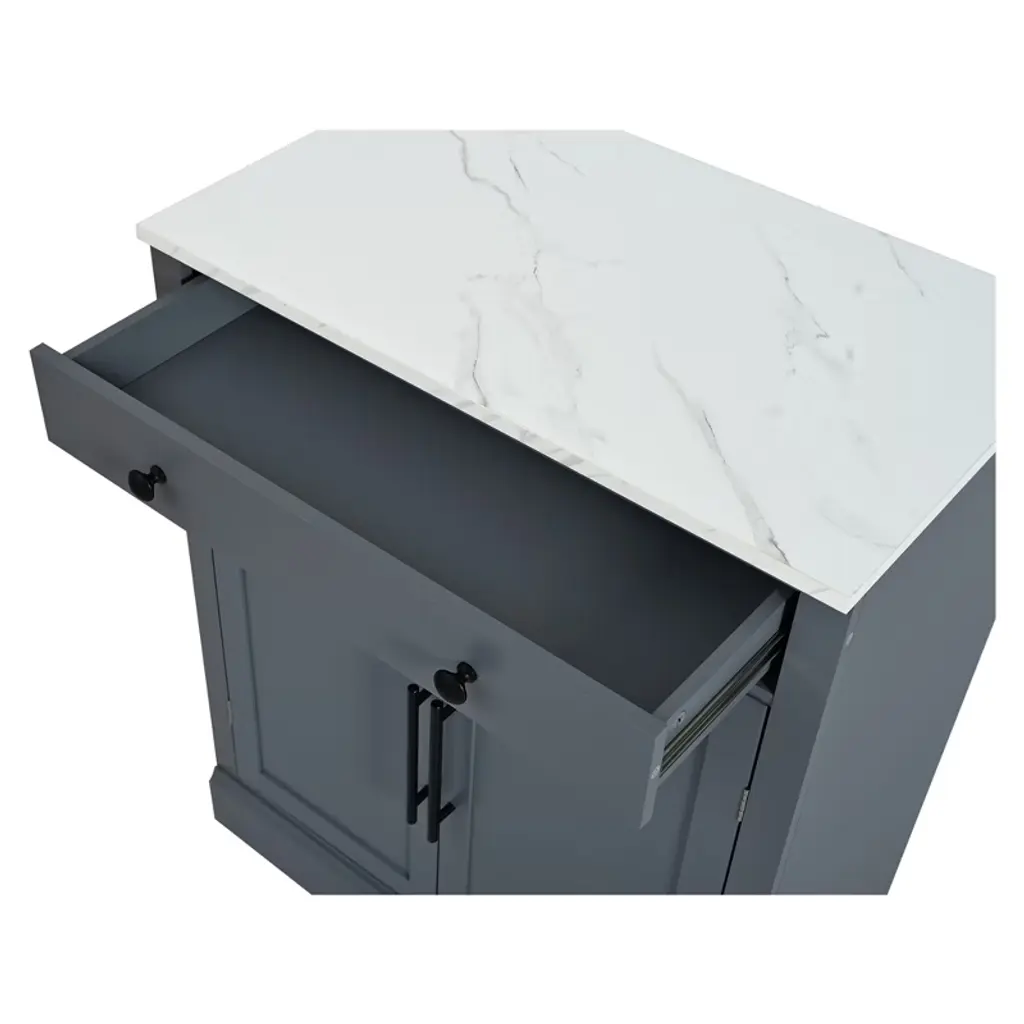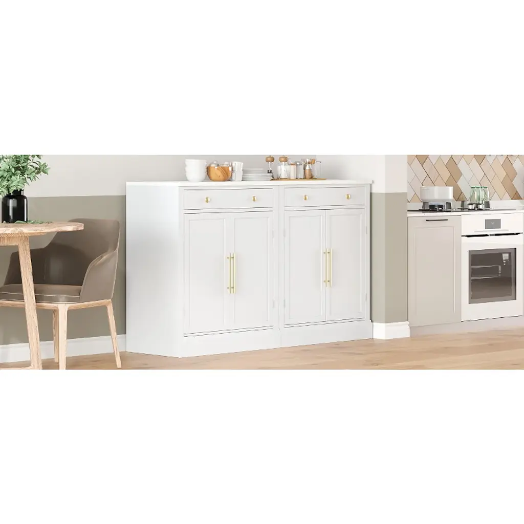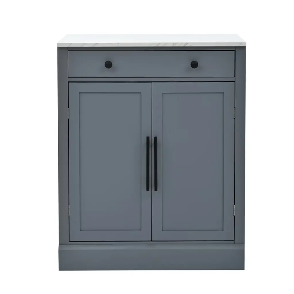 Upgrade your home storage with this stylish set of 2 freestanding cabinets, expertly crafted from durable P2 MDF and topped with luxurious faux white marble veneer countertops. Each cabinet measures 28.7"x17.5"x35.4", offering double the storage while maintaining a sleek, space-saving profile—perfect for kitchens, dining areas, or coffee bars. Inside, each unit features 2 adjustable shelves + 2 door shelves and a spacious pull-out drawer (44lb capacity) for organized storage of utensils, pantry items, or decor. The 35.4" counter-height marble tops double as prep surfaces or display areas, while anti-tip devices ensure safety. Designed for versatility, use them together or separately as pantries, buffets, or bars, blending modern aesthetics with everyday functionality.