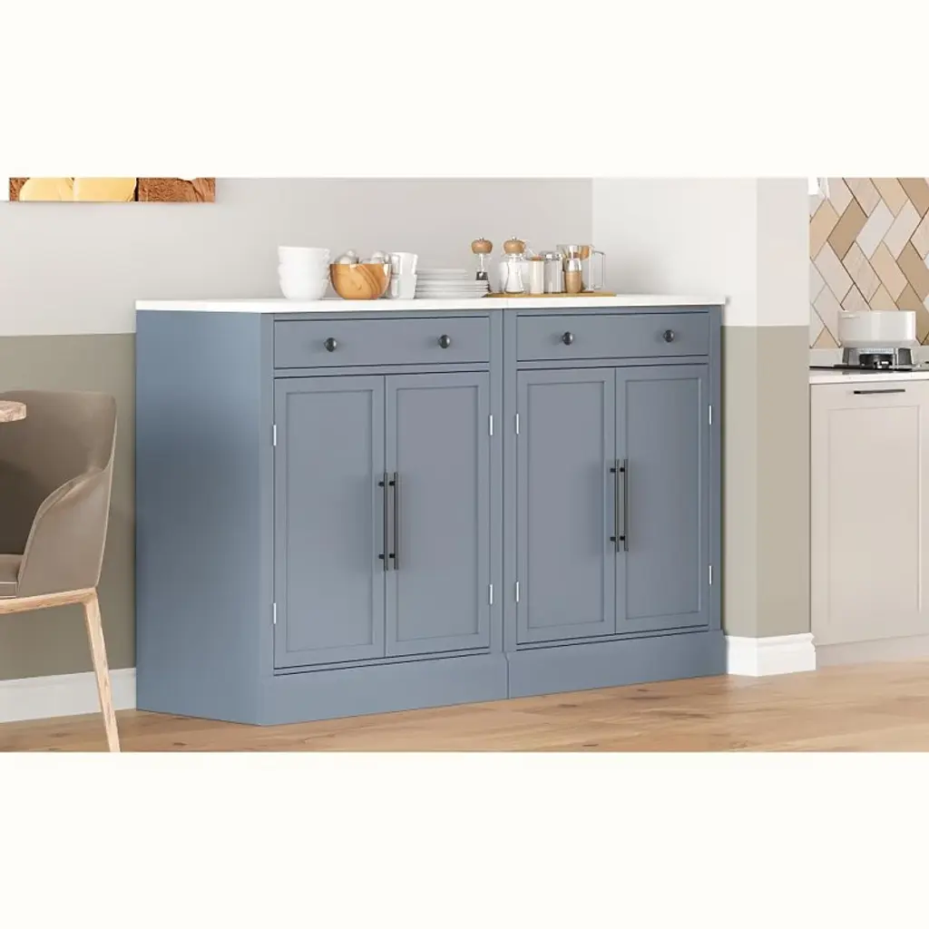 Chery Life Modern Gray Kitchen Pantry,buffet Food Storage With Drawer, 2 Adjustable Shelves And 2 Door Shelves For Dining, Kitchen, Set Of 2