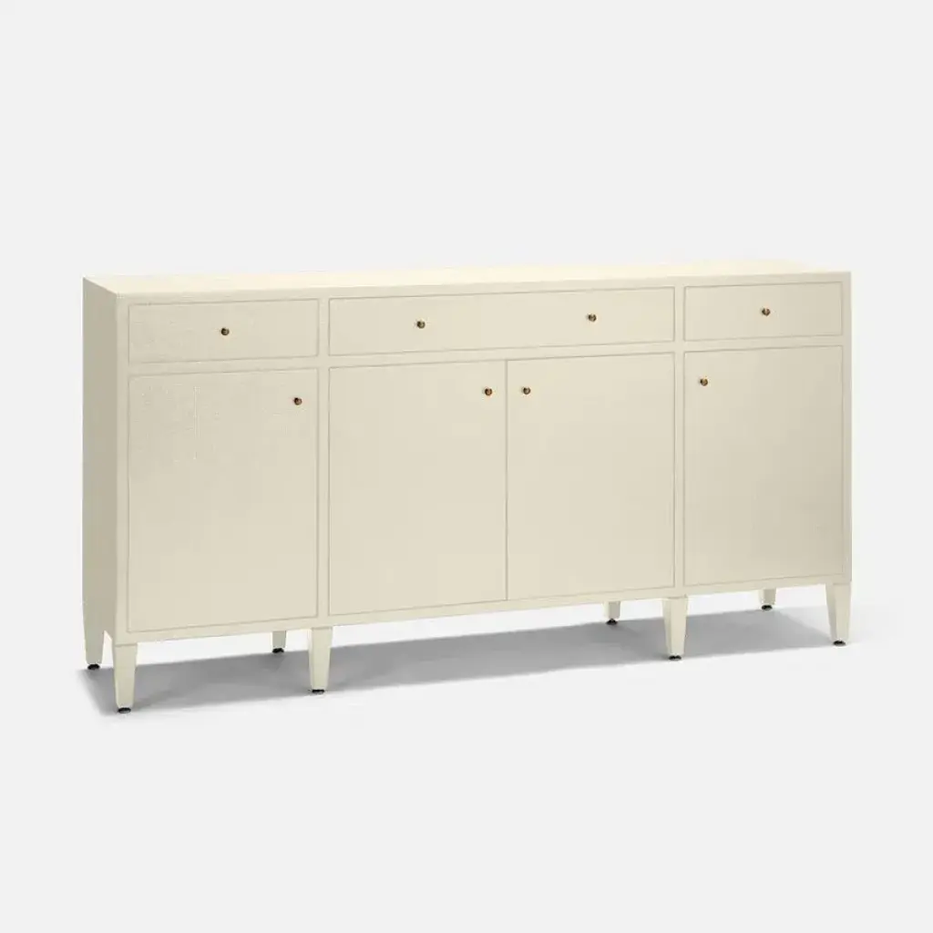 Our faux raffia Conrad collection, a Made Goods favorite, has expanded to include buffets with the same expertly crafted cabinetry and meticulous attention to detail. With proportions that are both modern and refined, each buffet lends quiet grandeur to any space.