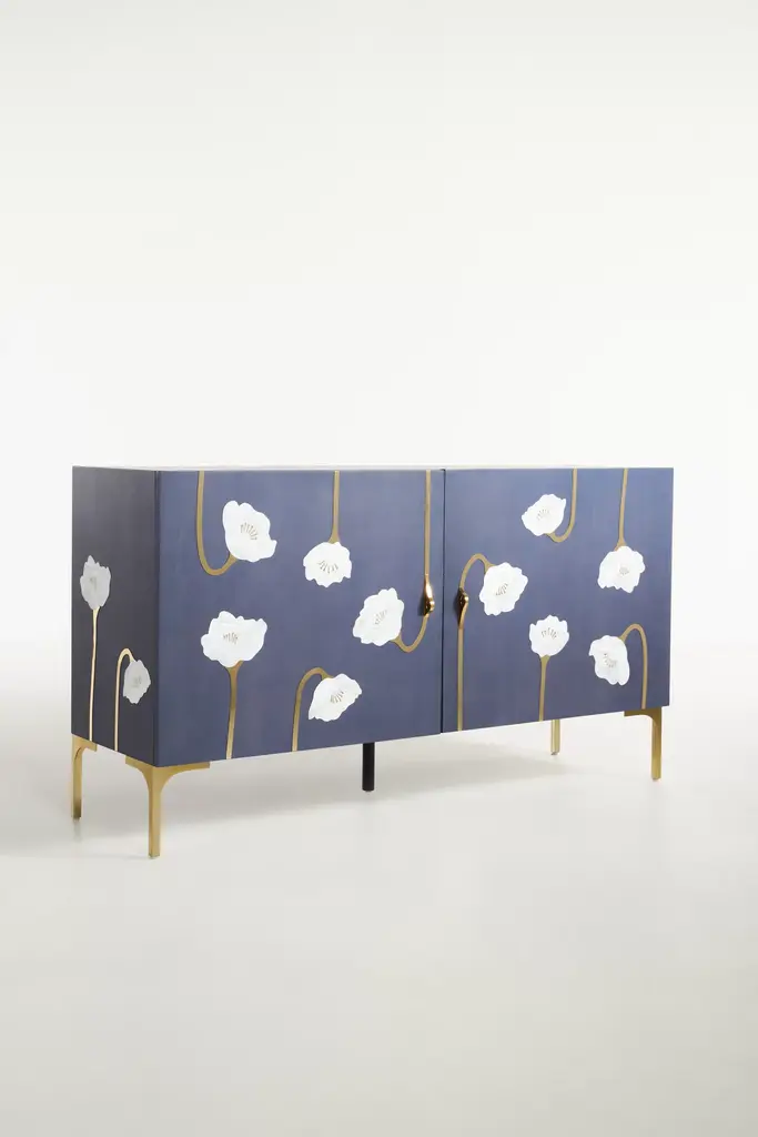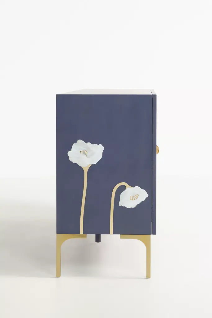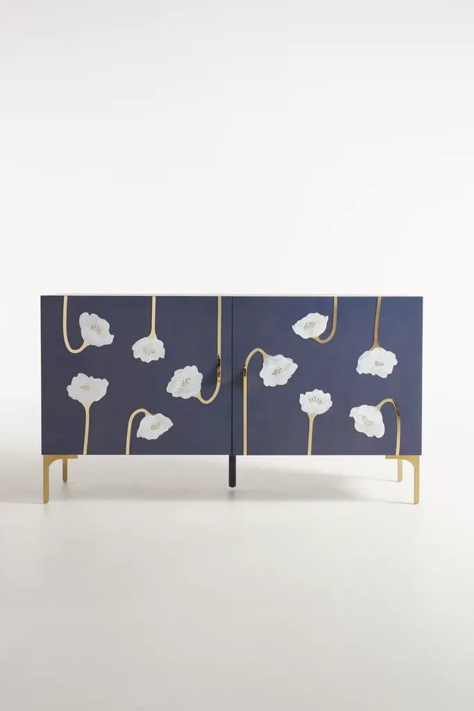Designed here at our home office in Philadelphia, PA, this beautiful collection showcases our signature whimsy and charm. With an all-over motif of brass inlay stems and mother-of-pearl blooms, it's intrinsically feminine and romantic - and it's a versatile storage piece that can serve as a home for dinnerware, sweaters, and more. For ordering assistance and more, please [contact us](https://www.anthropologie.com/help/contact-us#contact-us-section-2). For aesthetic advice and tips to help decorate your space, enjoy our complimentary [home styling services](https://www.anthropologie.com/help/personal-styling-home-decor). For more information on the materials and techniques of this piece, [click here](https://www.anthropologie.com/help/material-care-guide).