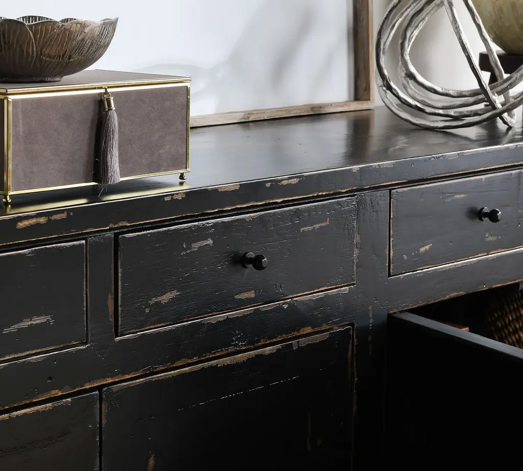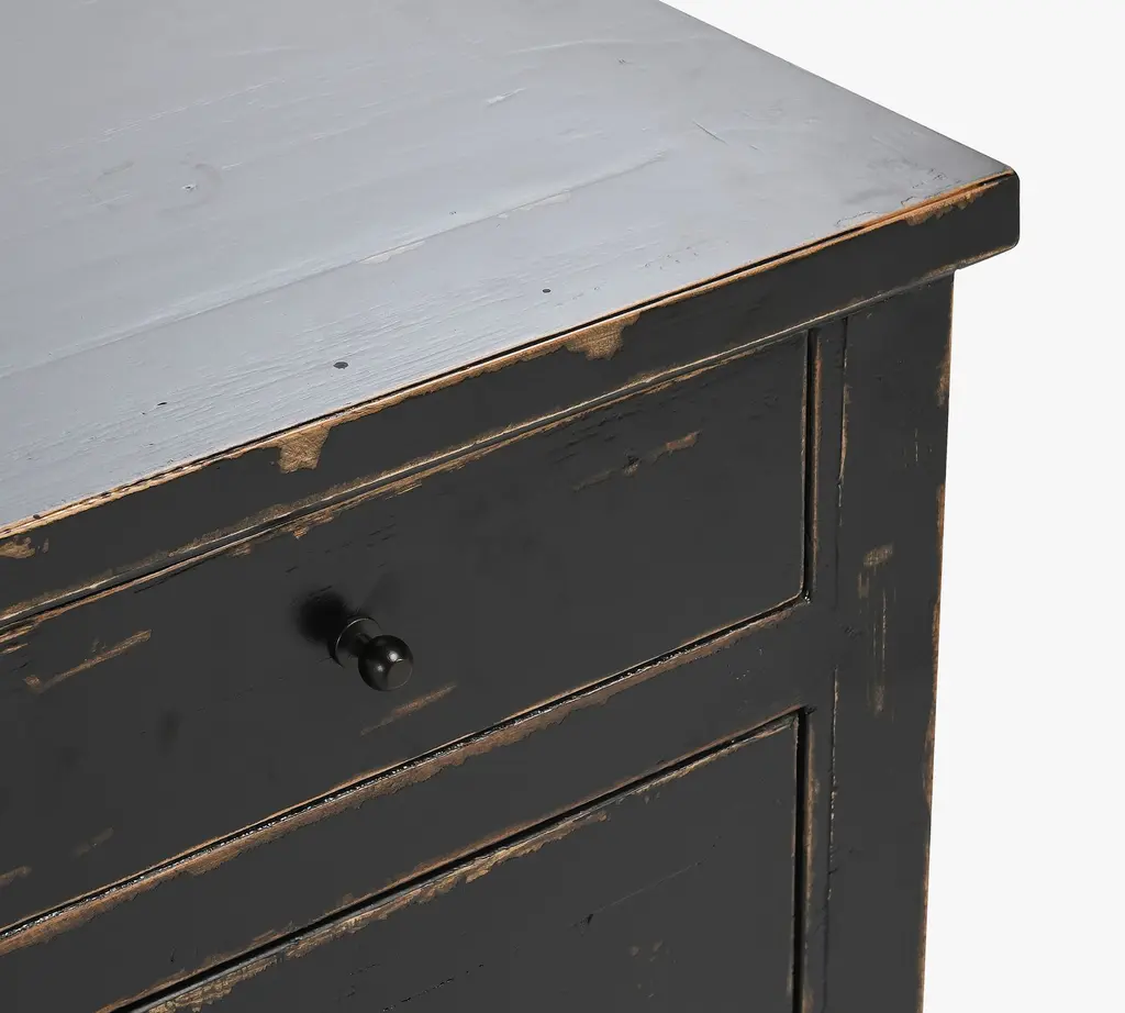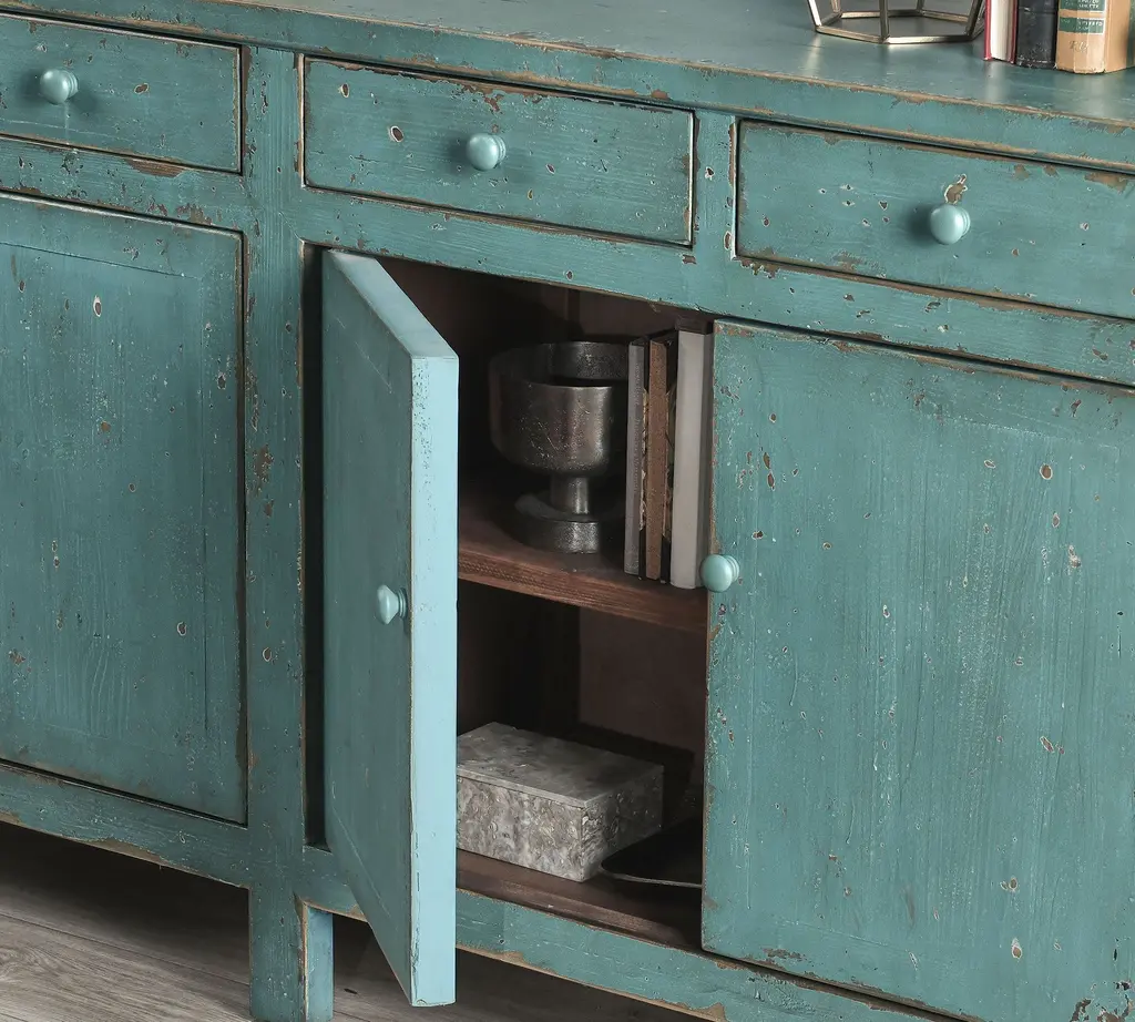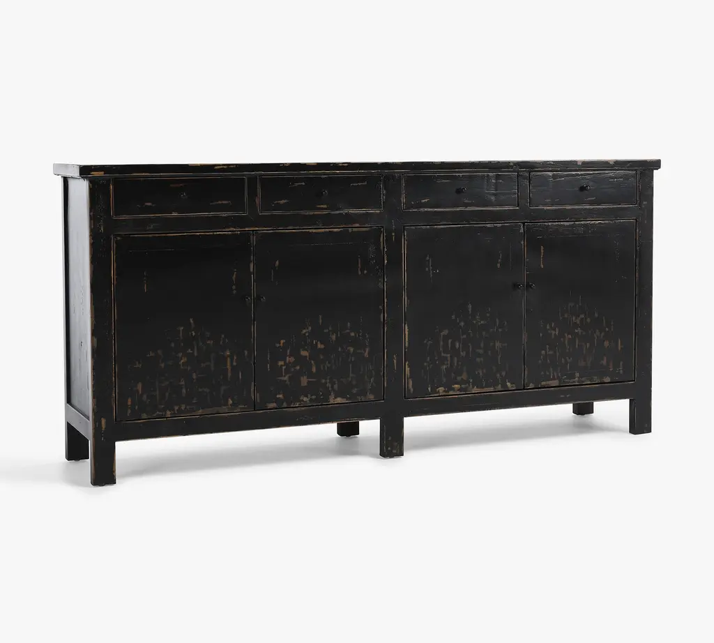 Crafted of reclaimed wood and distressed by hand, the Danton Buffet boasts the look of a found antique. The straight lines and bold framing give it a modern edge, and the expansive interior is made to support everything from stacks of dishes to large serveware. The drawers keep flatware and linens neatly organized.