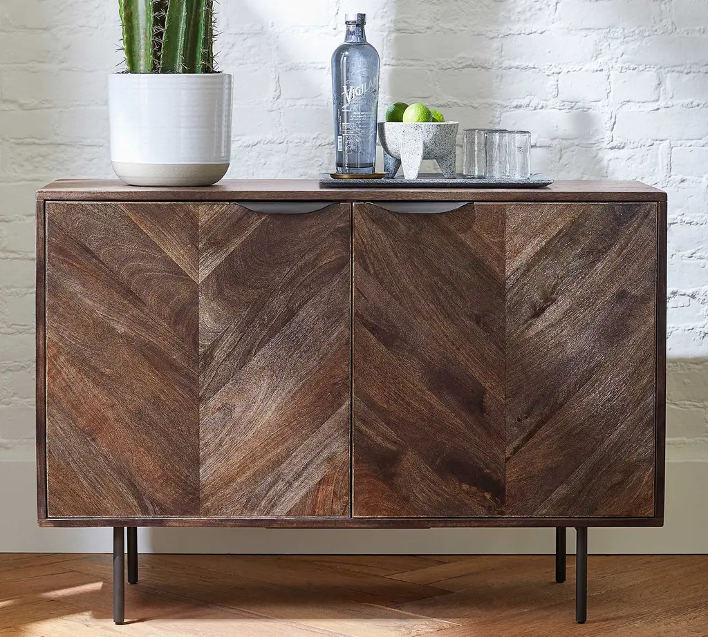 Dining buffet, media console, bedroom accent: there’s really nothing this sideboard buffet can't do. Part of our Dayton Collection, it’s designed for small spaces but can truly work anywhere you need storage, and the cord cutouts keep your technology tidy. Aside from function, it’s got great form with a subtle chevron pattern and incredible tonality.