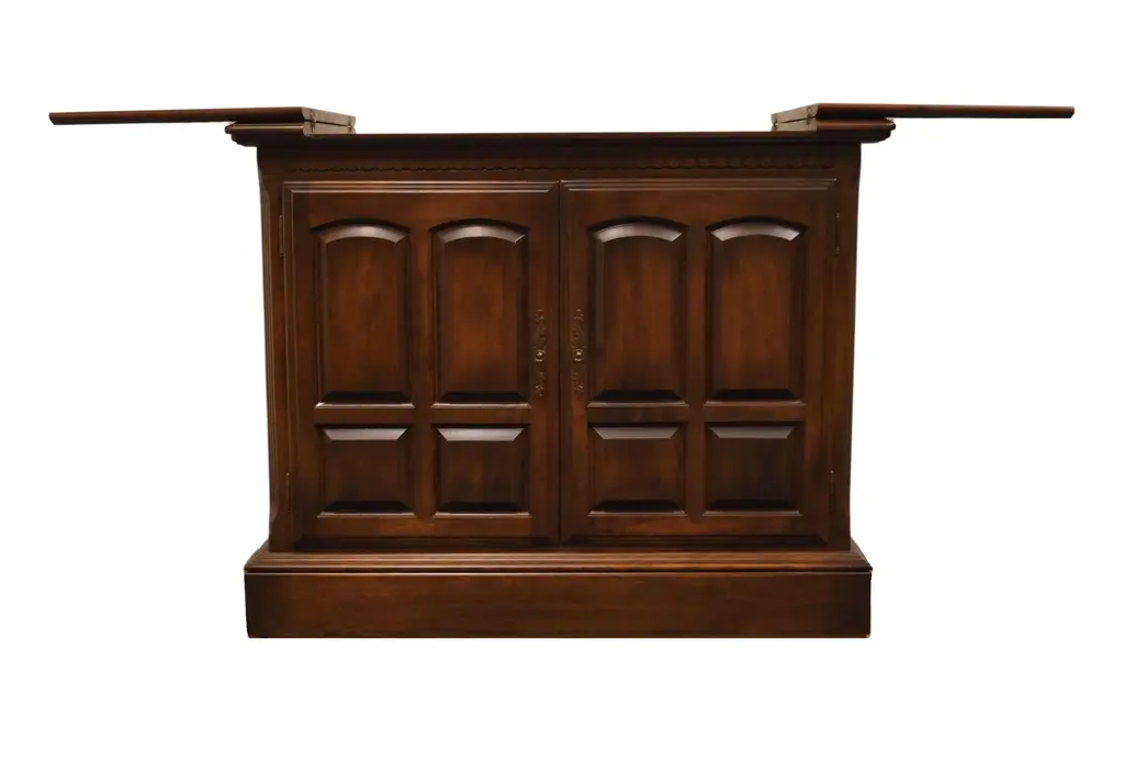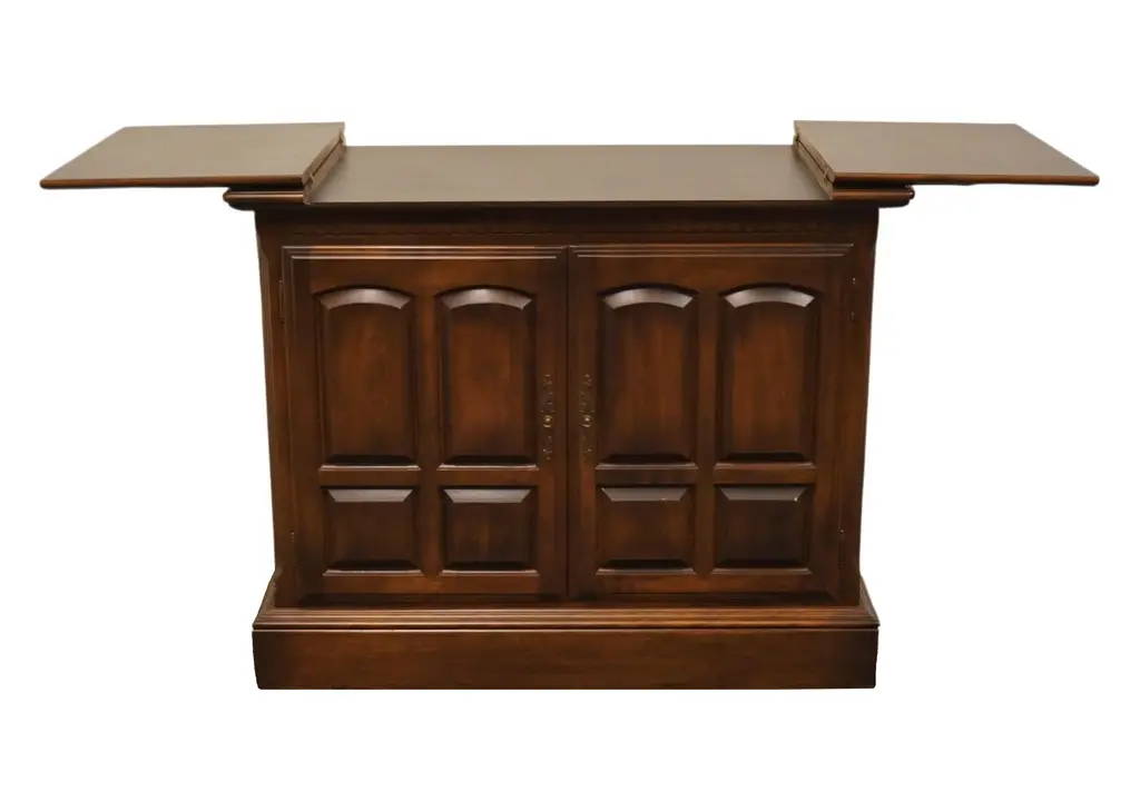 ETHAN ALLEN Classic Manor 41" Flip-Top Server 15-6015 33.25" High Closed: 41.5" Wide Open: 63" Wide 21" Deep We specialize in high end used furniture that we consider to be at least an 8 on a scale of 1 to 10 regarding condition, unless otherwise noted.