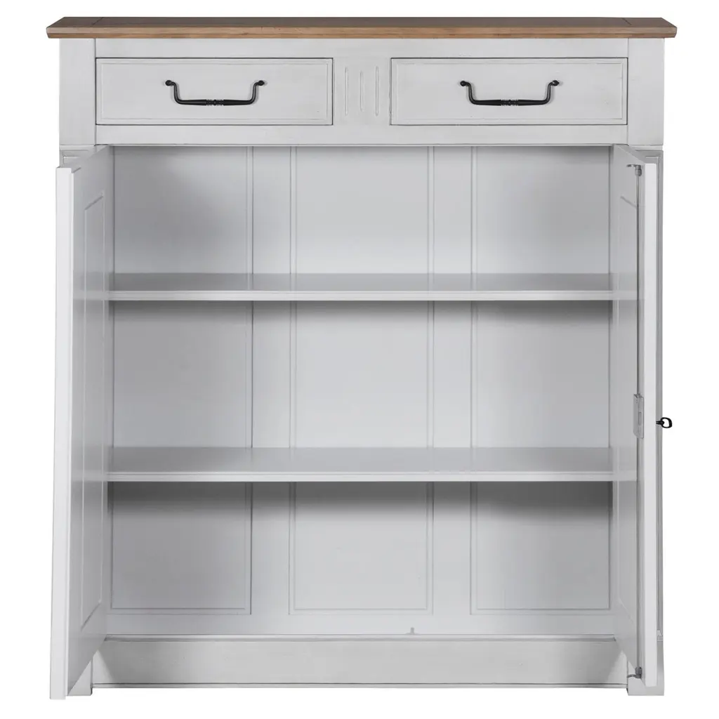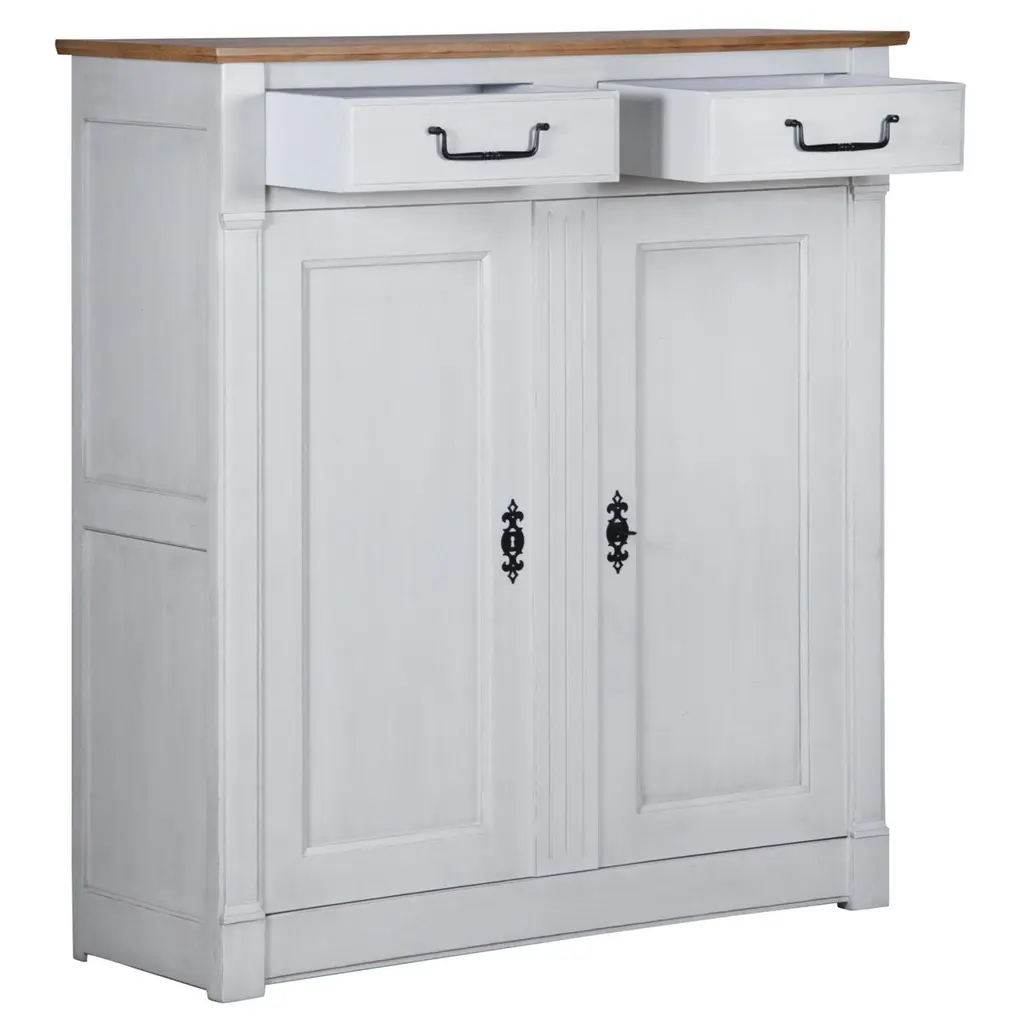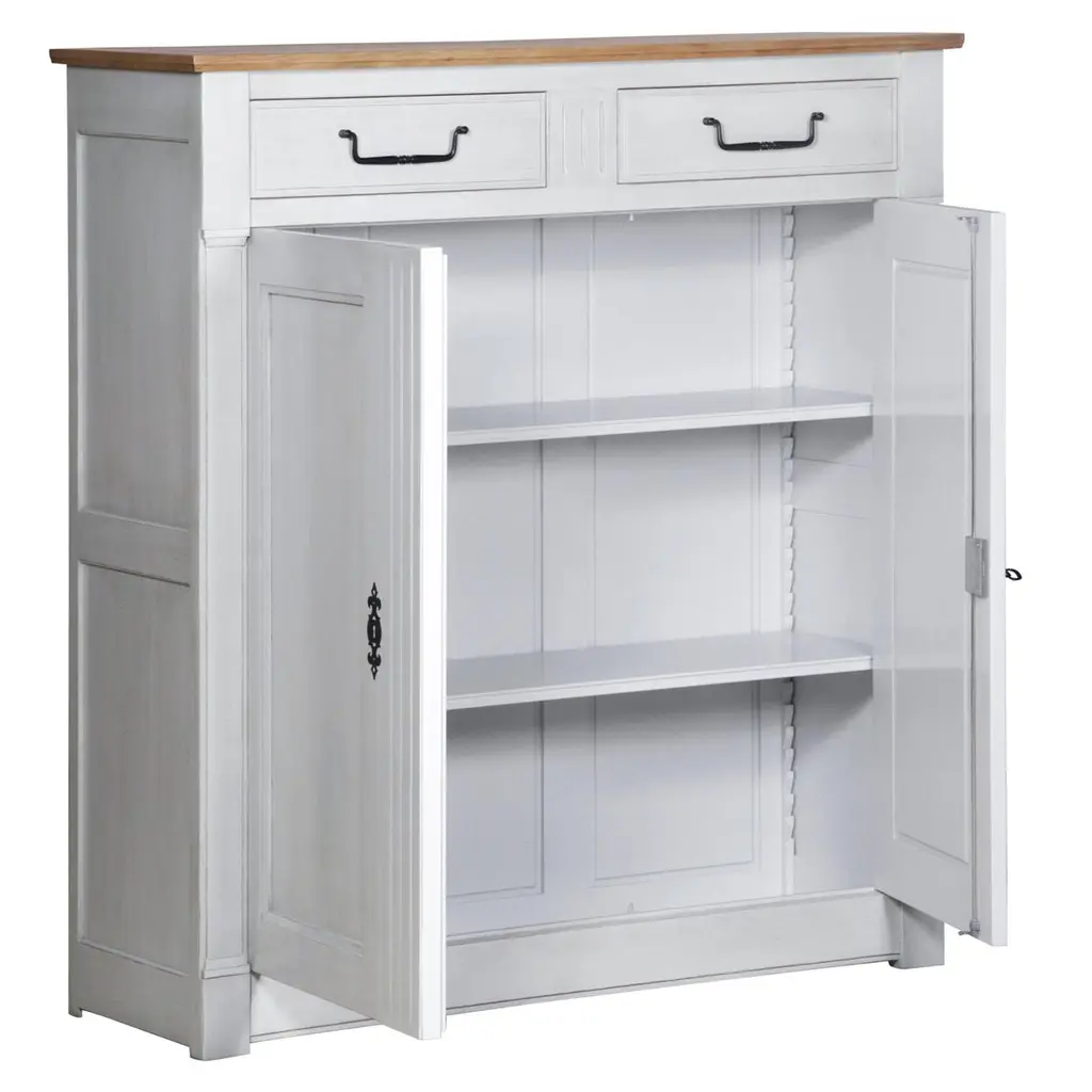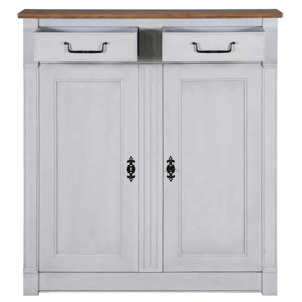 This cabinet is a furniture from our RIVE GAUCHE collection. The quality of the French oak, the finish full of charm, the ironed handles, entries and key give RIVE GAUCHE this very chic and noble attitude.The dimensions for each piece of this collection have been adapted to our actual current interiors' requirements.This 2 doors cabinet is made 100% in solid French oak and fully assembled in our workshop. The 2 drawers have dovetails mounted fronts for more durability, useful dimensions of each are: L.46 cm / 18.1'' x H.12 cm / 4.7'' x P. 32 cm / 12.6''The 2 shelves are adjustable on wooden racks, length 120 cm / 47.2'' x depth 33 cm / 52.4''The opening and closing of the 2 doors is made with 2 polished lacquered iron keys (and entries) + 1 lock The proposed finish, here, is a chestnut oak stain for the top.The other parts are pearl-grey lacquered. You can also choose your own finish, we do bespoke furniture.GONTIER is a brand of cabinet makers established in France, Mayenne since 1920. It is also part of the group MON PETIT MEUBLE FRANÇAISGONTIER provides you with 100% made in France classical and contemporary pieces of furniture.The manufacture of each piece is made accordingly to traditionnal French techniques of woodworking for very high end pieces and long durability.The solid wood comes from sustainably managed French Forests. We offer a 5 year warranty on each piece and as proof of their authenticity and uniqueness, our furniture pieces are burnt with a "G" hallmark.