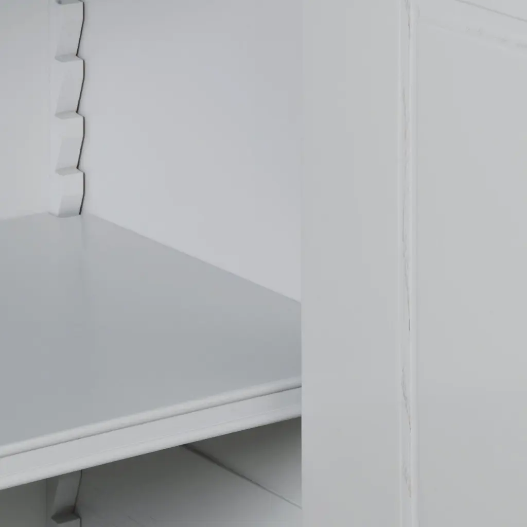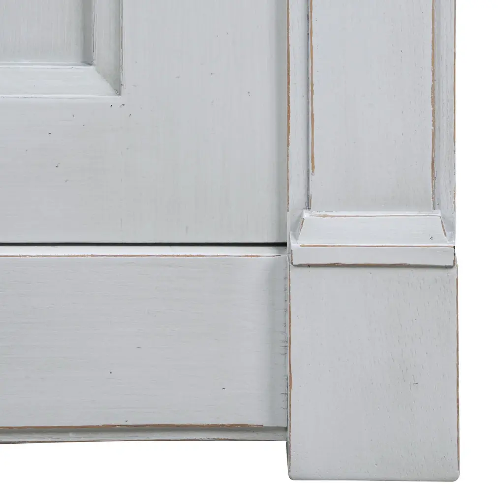 French Provincial Handcrafted Pearl Gray Lacquered High Buffet In Solid Oak