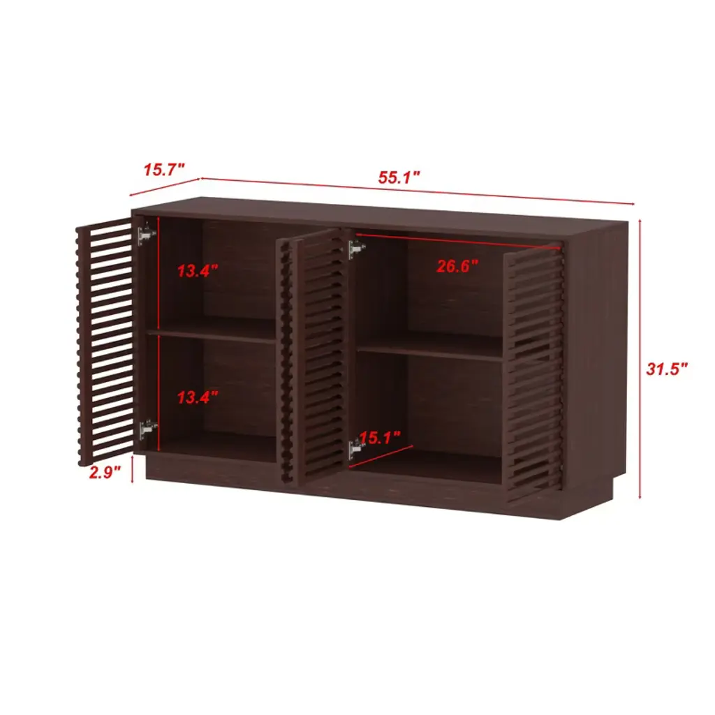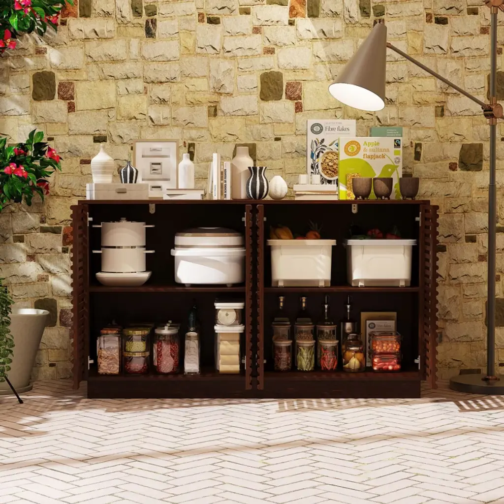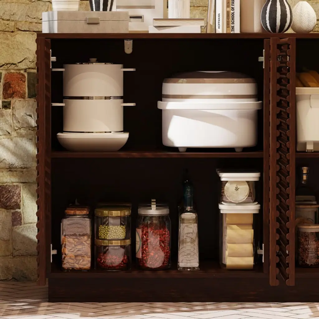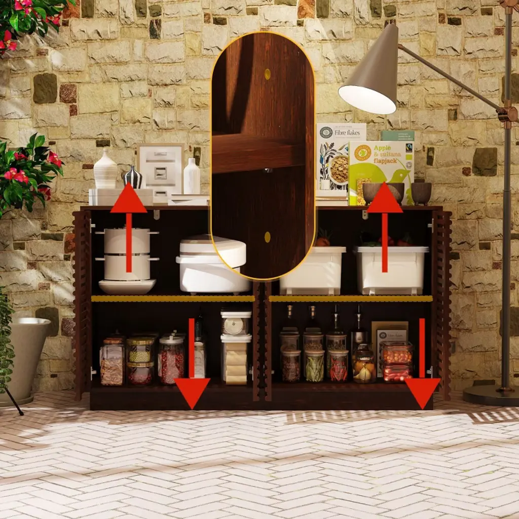 Fufu&gaga Dark - Brown Kitchen Buffet Cabinet With Louvered Doors And Adjustable Shelves