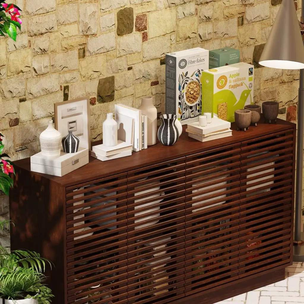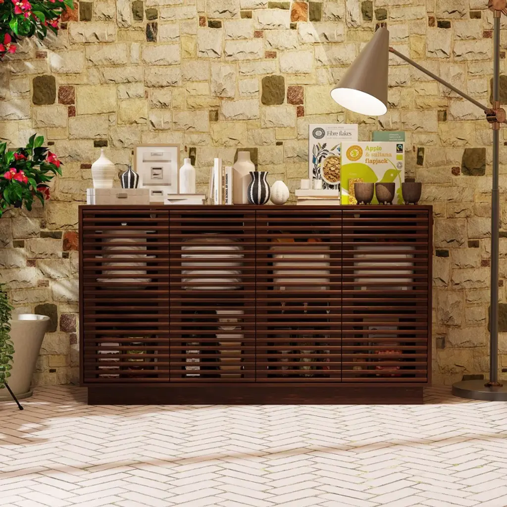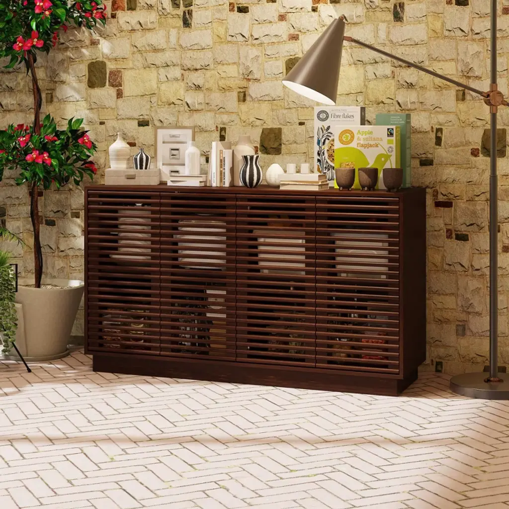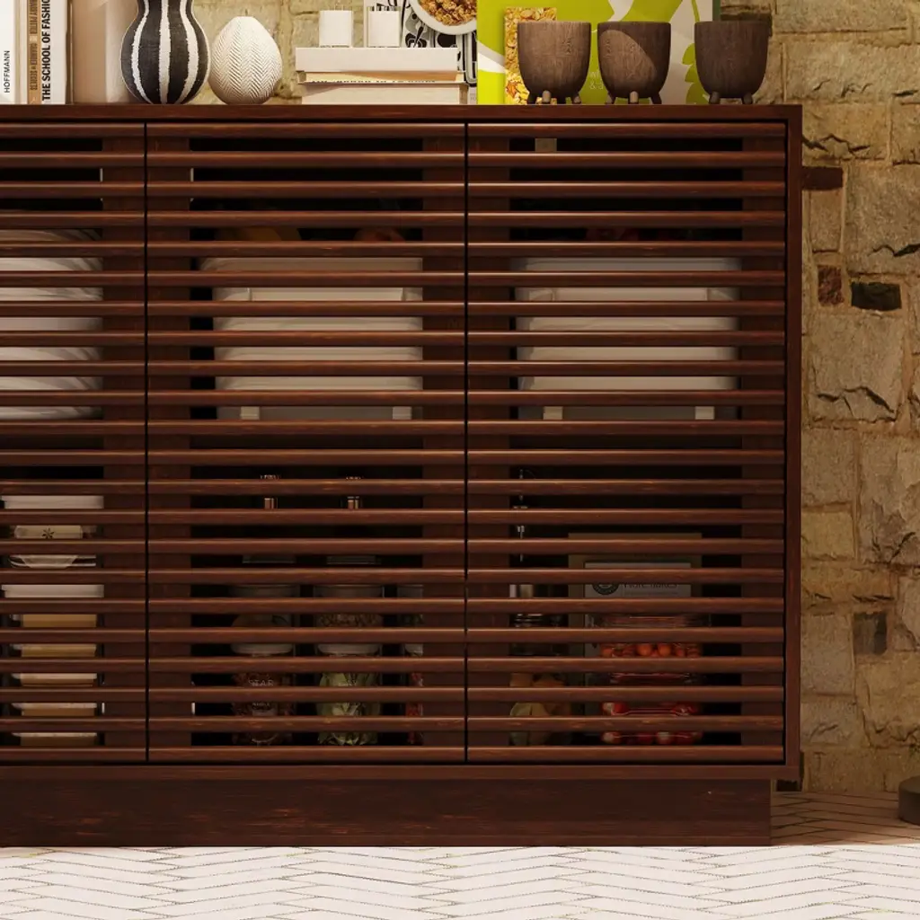 Fufu&gaga Dark - Brown Kitchen Buffet Cabinet With Louvered Doors And Adjustable Shelves