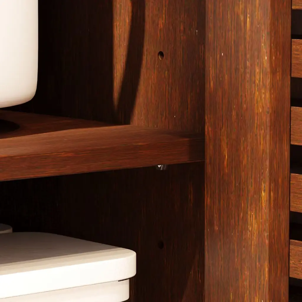 This cabinet from FUFU&GAGA features a rich dark - brown wooden finish, exuding a warm and rustic charm. The louvered doors not only add an aesthetic touch but also allow for ventilation, keeping the stored items fresh. It has a spacious top surface, perfect for placing decorative items, serving dishes during parties, or as an additional workspace in the kitchen. Inside, the adjustable shelves can accommodate various sizes of kitchenware, from large pots and pans to small spice jars. The cabinet is equipped with sturdy hinges and simple, yet functional hardware for smooth door operation.