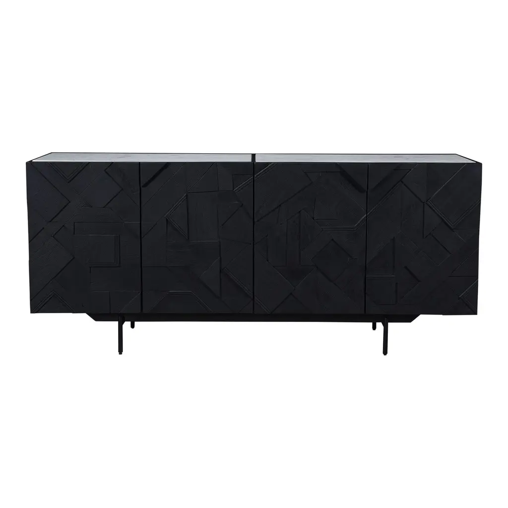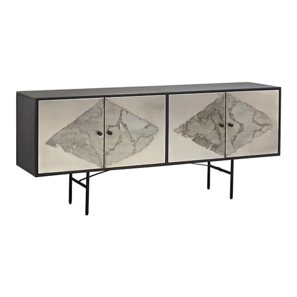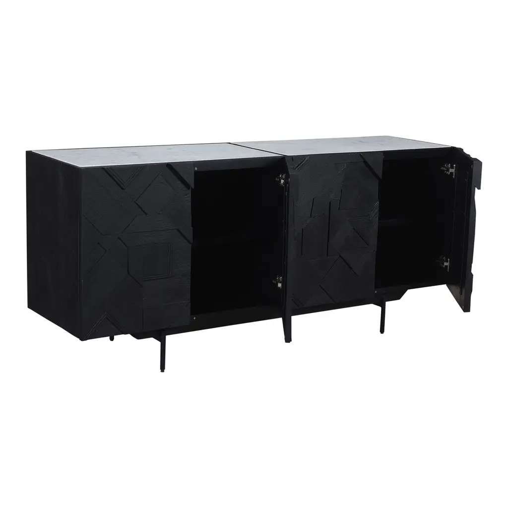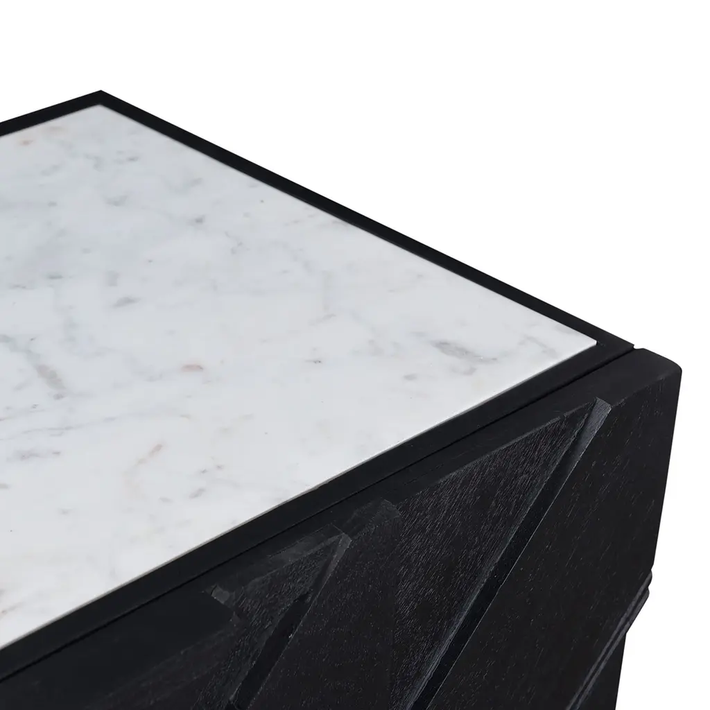 Clean design perfect for any modern decor. Stylized blend of wood and marble. A clean black finish grants a chic appearance. Versatile storage that is both spacious and stylish.