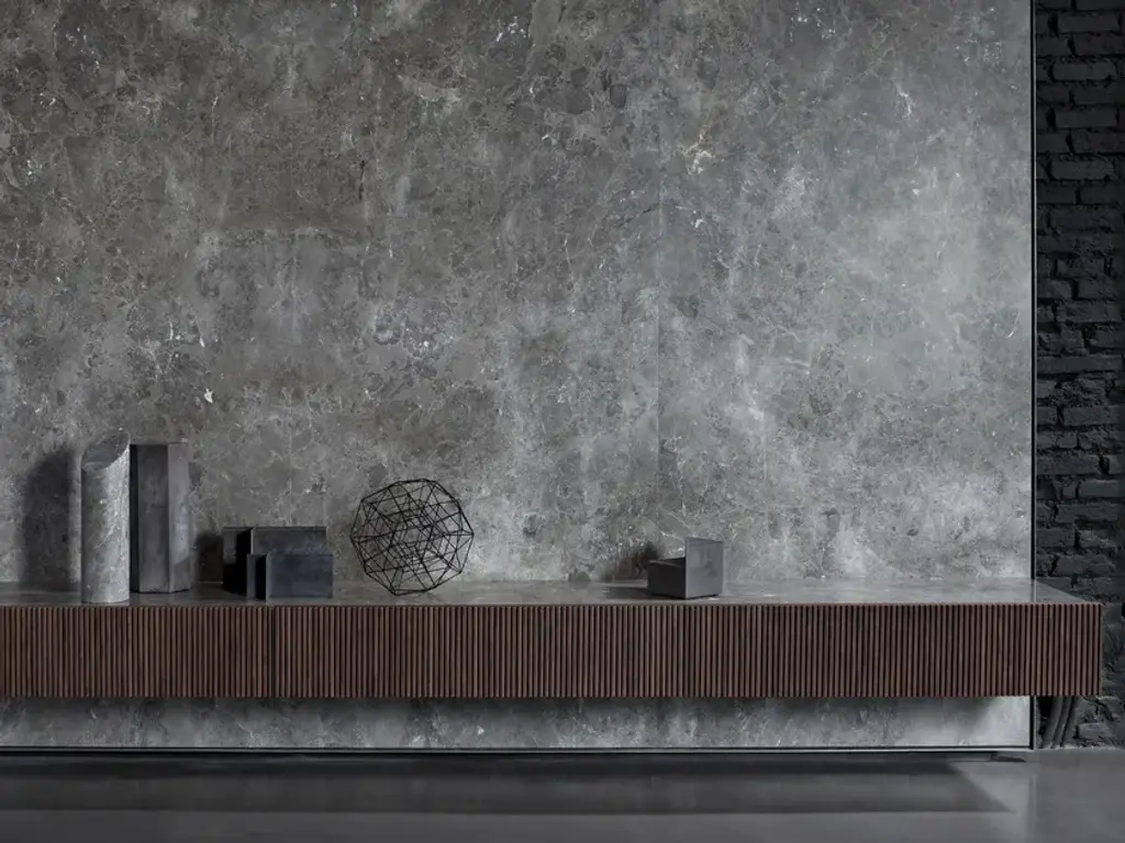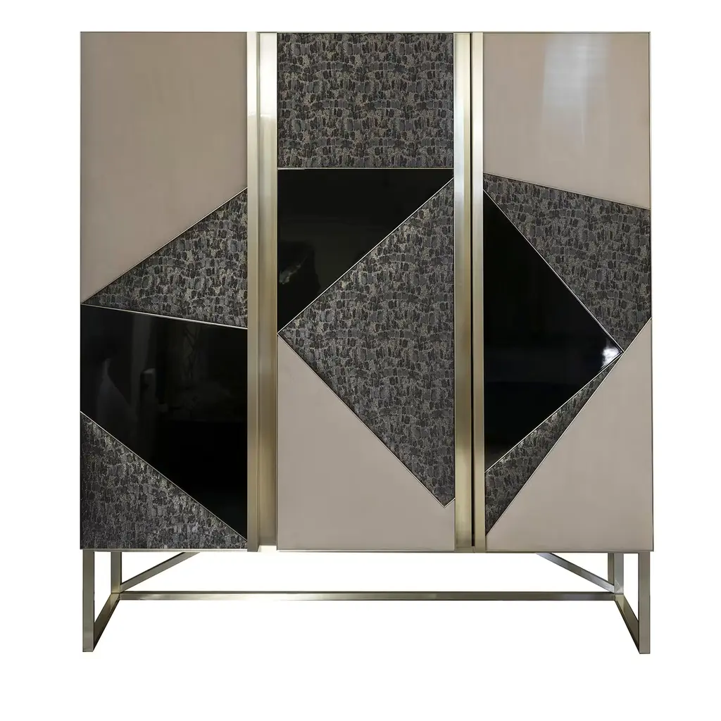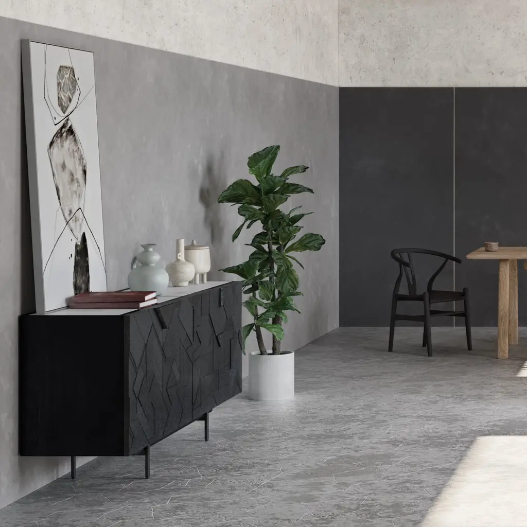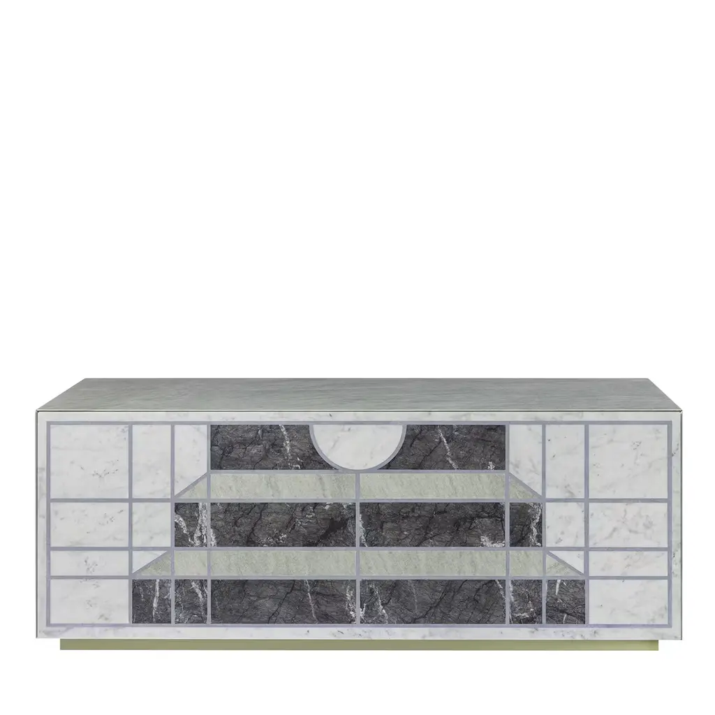 Clean design perfect for any modern decor. Stylized blend of wood and marble. A clean black finish grants a chic appearance. Versatile storage that is both spacious and stylish.