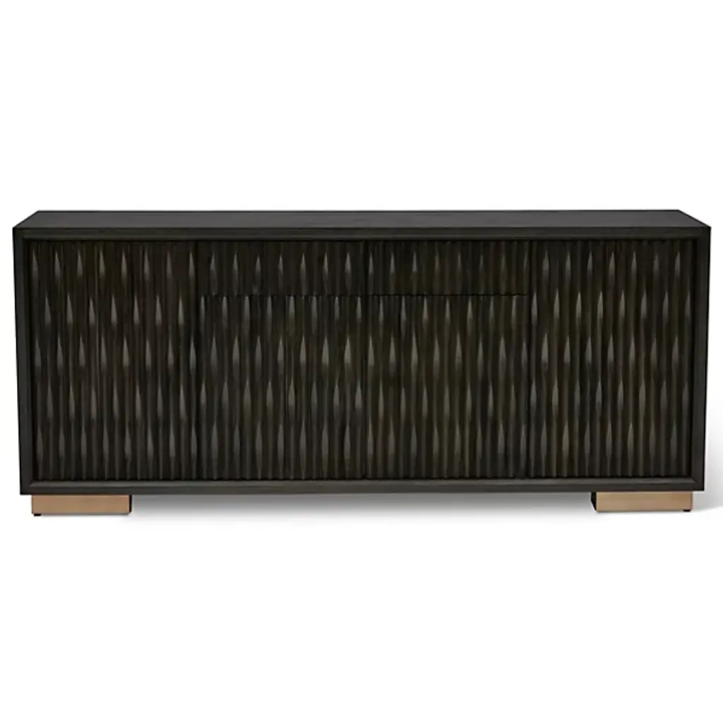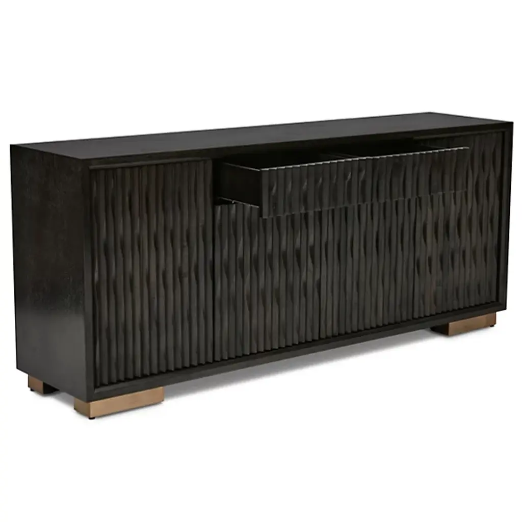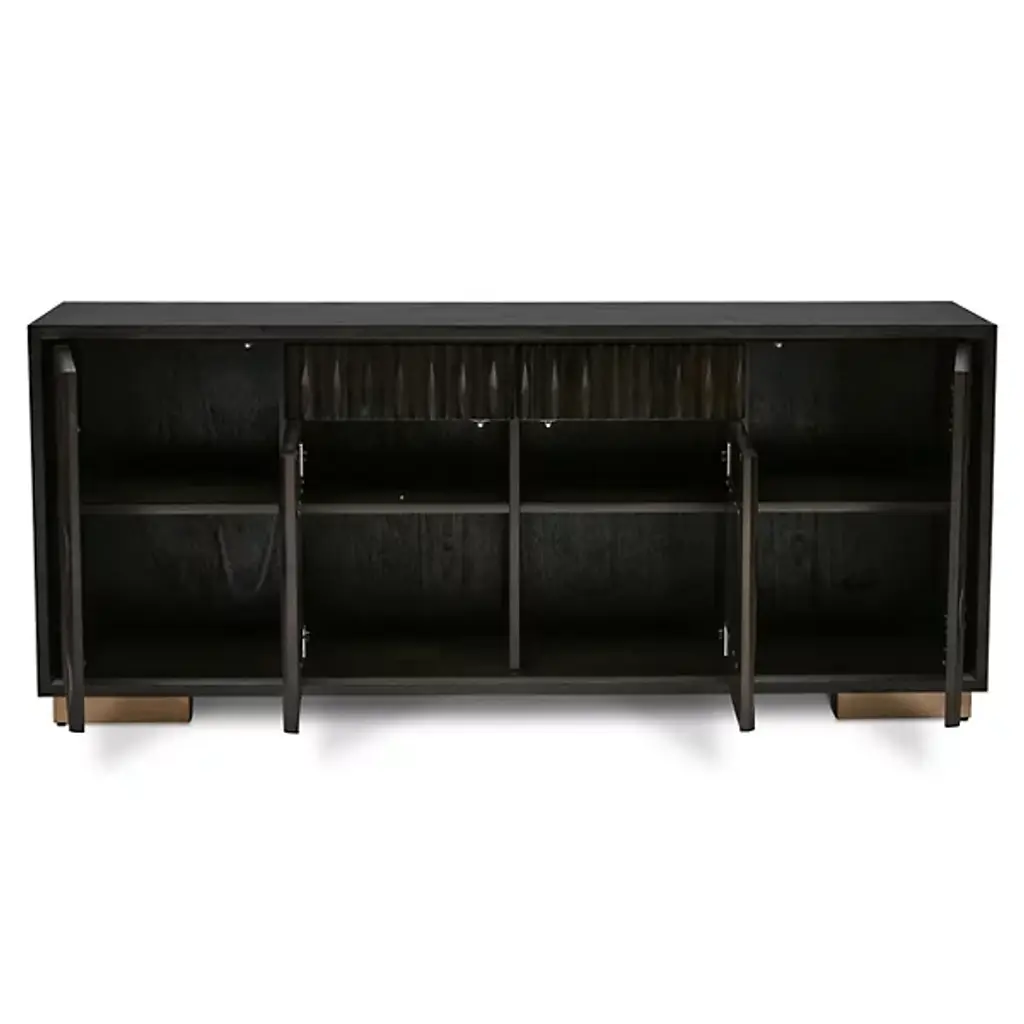 The IE Series Madison Buffet by Urbia offers a sleek addition to your dining or living room. Embodying a blend of modern and contemporary styles, this buffet provides both functionality and elegance. Featuring solid Mindi wood doors and adjustable shelves, it caters to your storage needs while maintaining a chic look. With its media cutouts for cable management, this buffet seamlessly integrates into your entertainment or dining setup, ensuring a clean and organized appearance. Perfect for residential use.