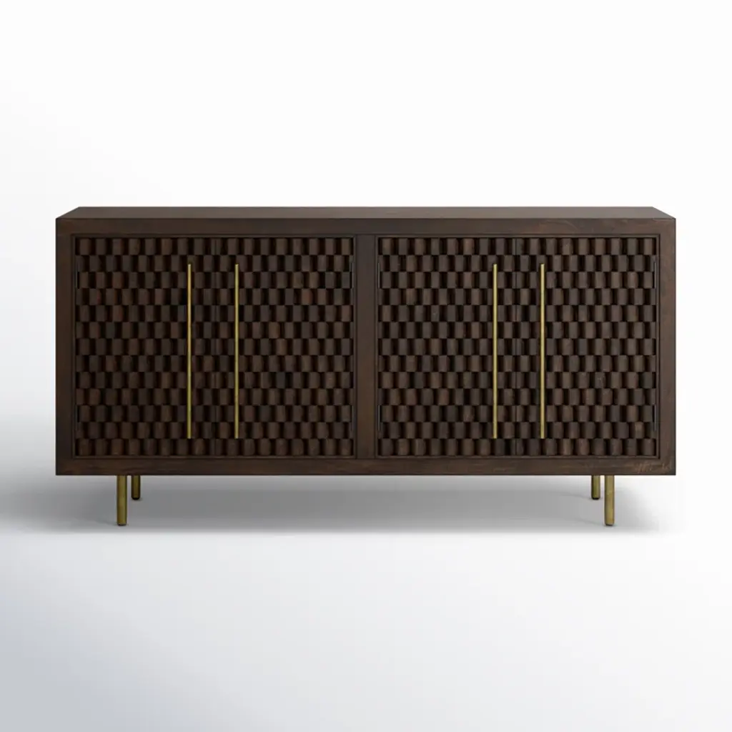 Contemporary Modern Style. Part of Mako collection. Dimensions: 76"W 18"D 34"H. Product weight: 157lbs. Color: Grey. Matt Lacquer: No Stain finish. Assembly is not required. Made in China. We are offering 1 year limited warranty (covered for any manufacturer's defect). Construction: Plywood,Oak Veneer,Polyurethane. Frame: Solid Black Oak Frame. Other materials: Brass Legs. We understand how important your home is and how decorating your kitchen, dining room or bedrooms with classy, contemporary furnishings can help make it a place that reflects who you are. We believe in the power modern furniture has in creating not just a home but YOUR home. We believe in feeling good about our home's environment, and we think you do too.