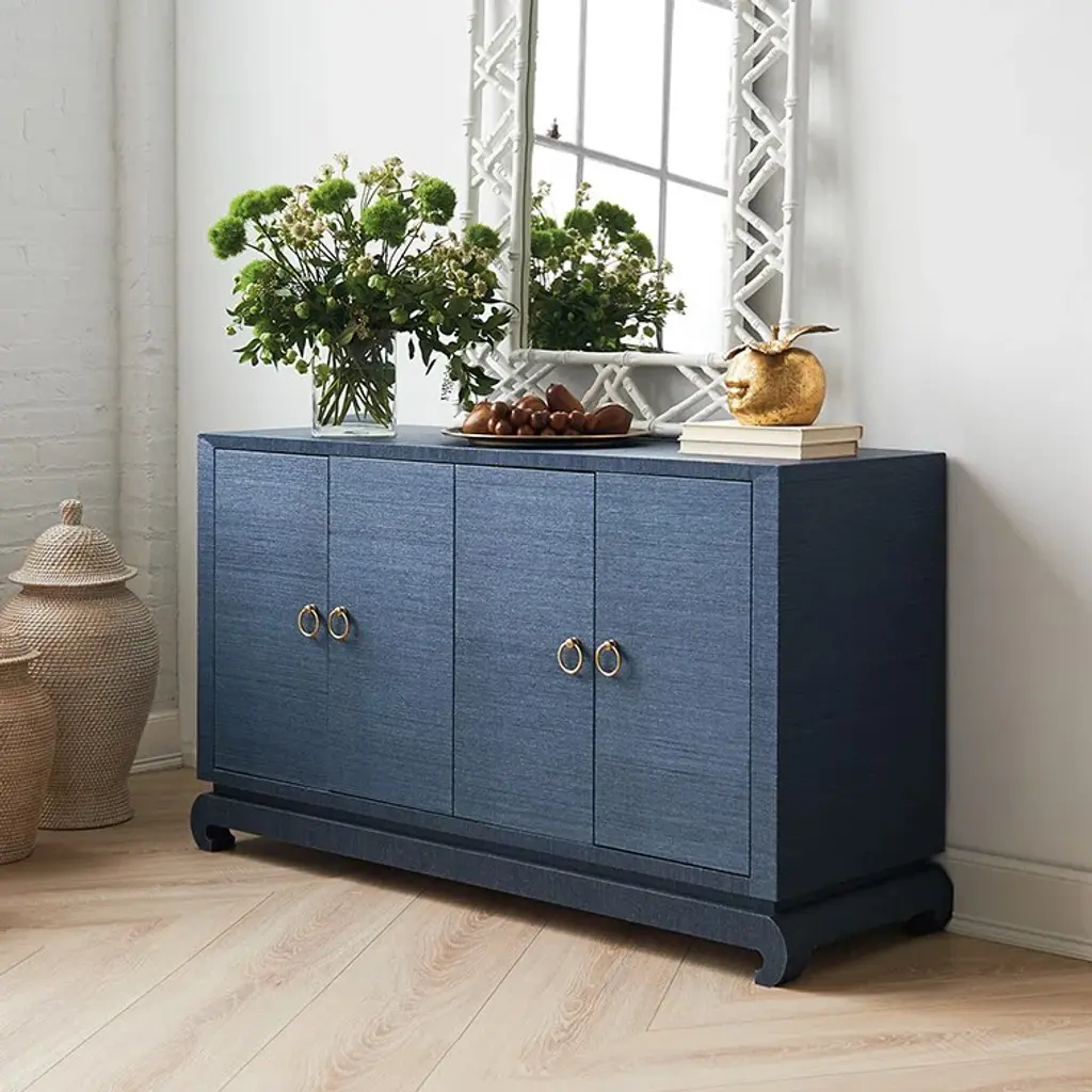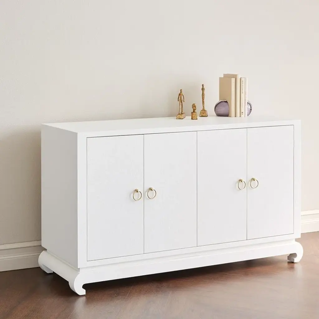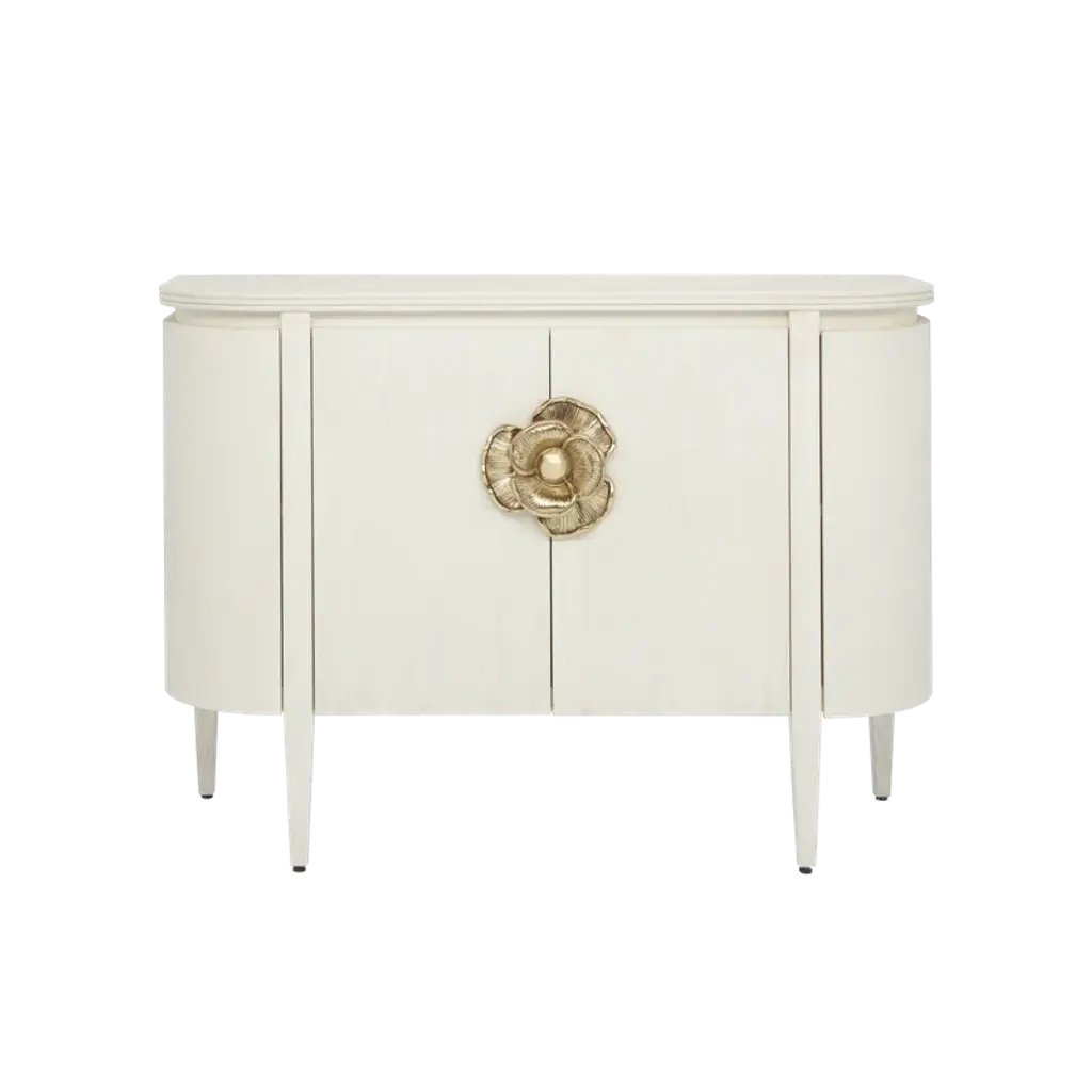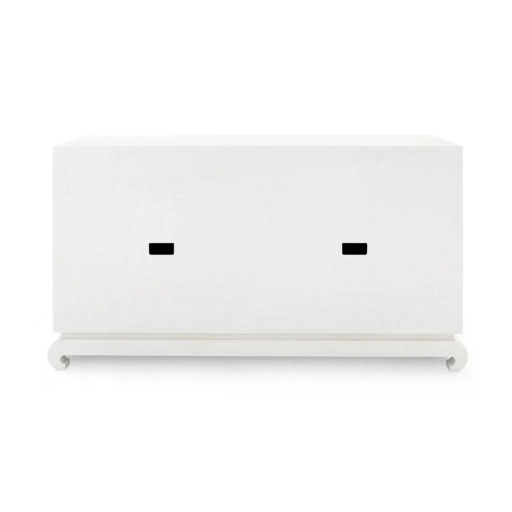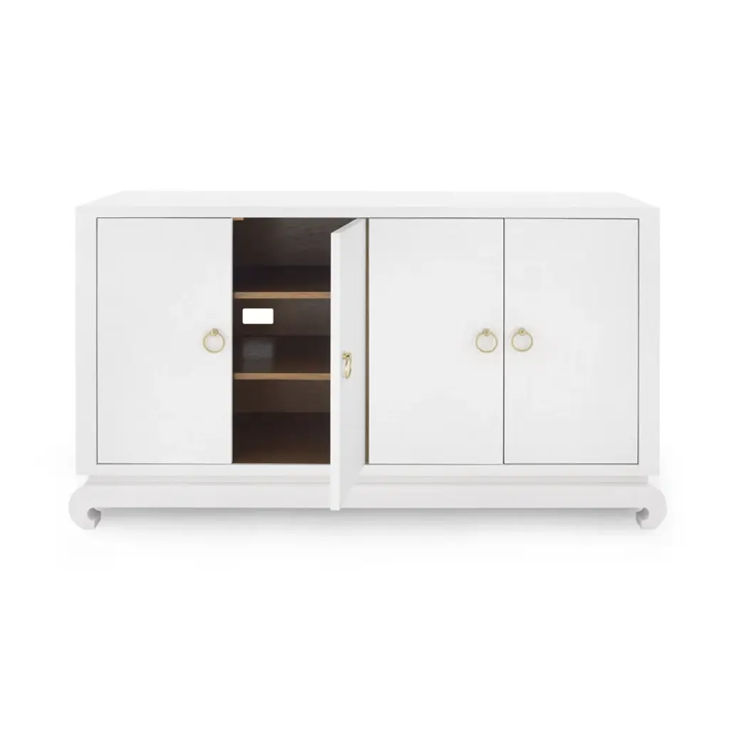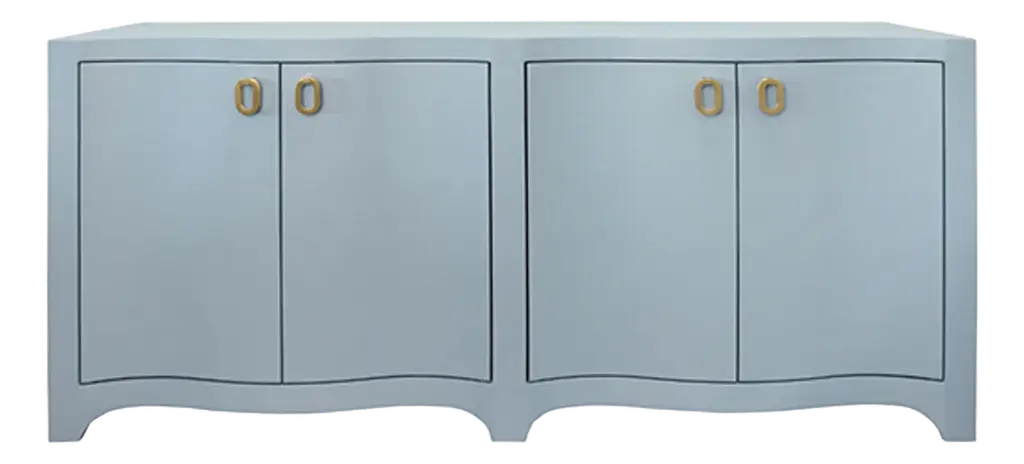 The Meredith cabinet combines a solid geometric rectangular case with a whimsical and delicate curving chow foot. This stylish piece can grace any study or dining room holding everything from AV components to dishes and glasses.
